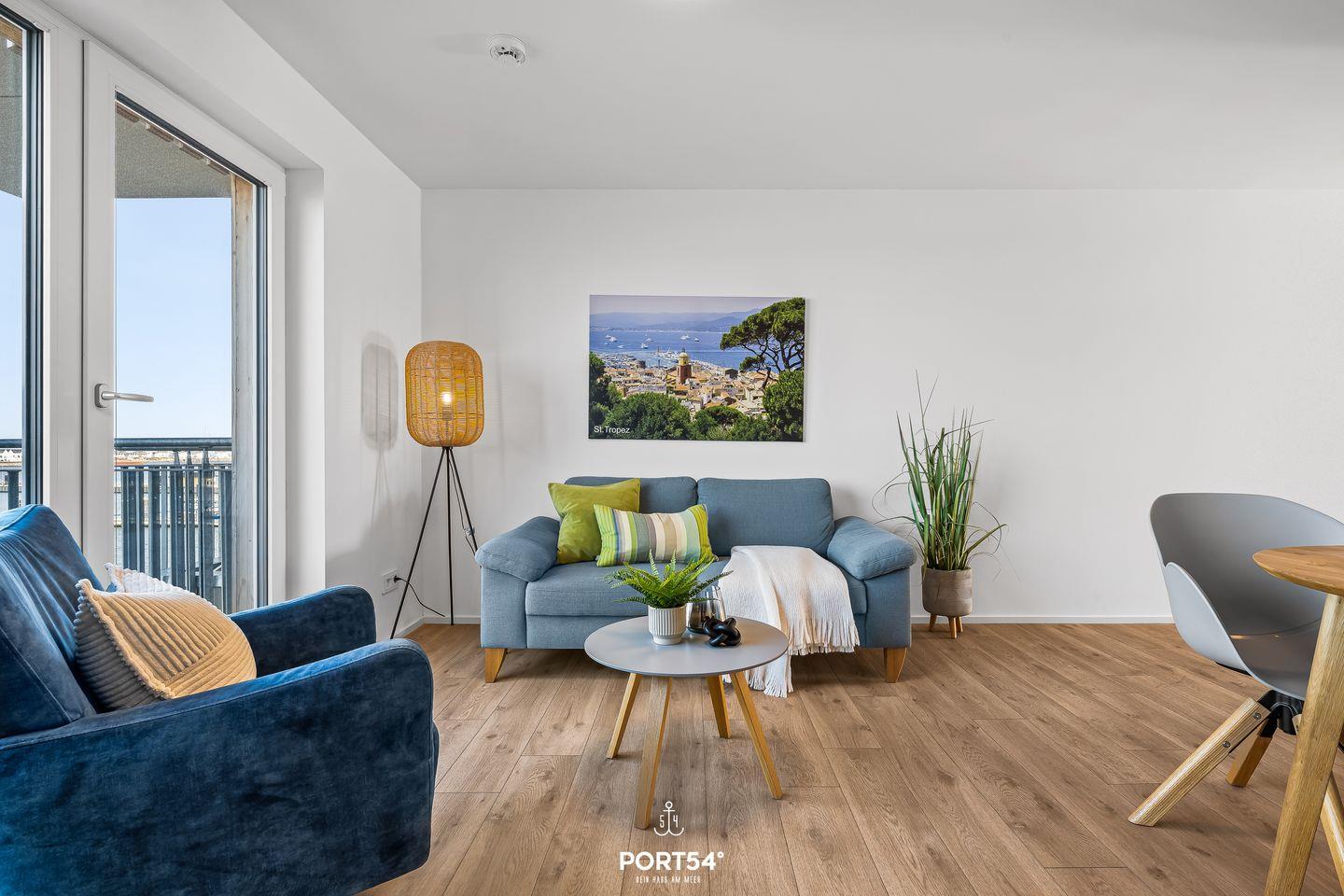 Charmante Ferienwohnung St. Tropez mit Balkon und Hafenblick im Ostseeresort Olpenitz.