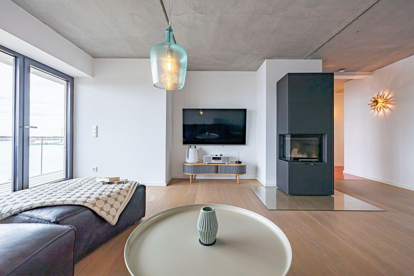 Moderne Ferienwohnung in Olpenitz mit Balkon, Sauna, Kamin und traumhaftem Meerblick für einen entspannten Aufenthalt.