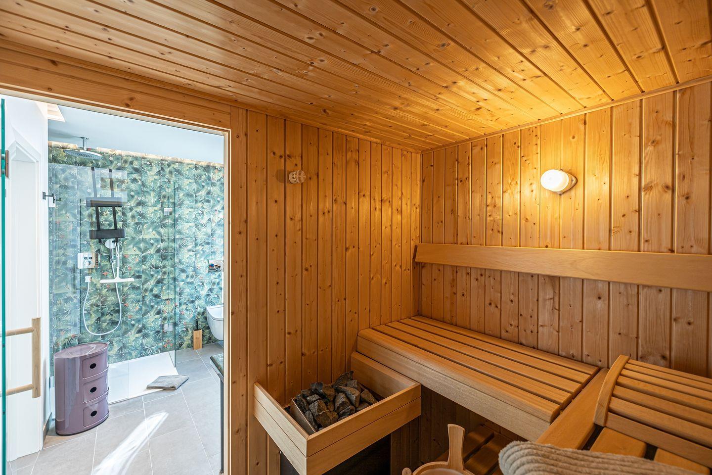 Wellness-Liebhaber profitieren von einer finnischen Sauna, die Dir exklusiv zur Verfügung steht.
