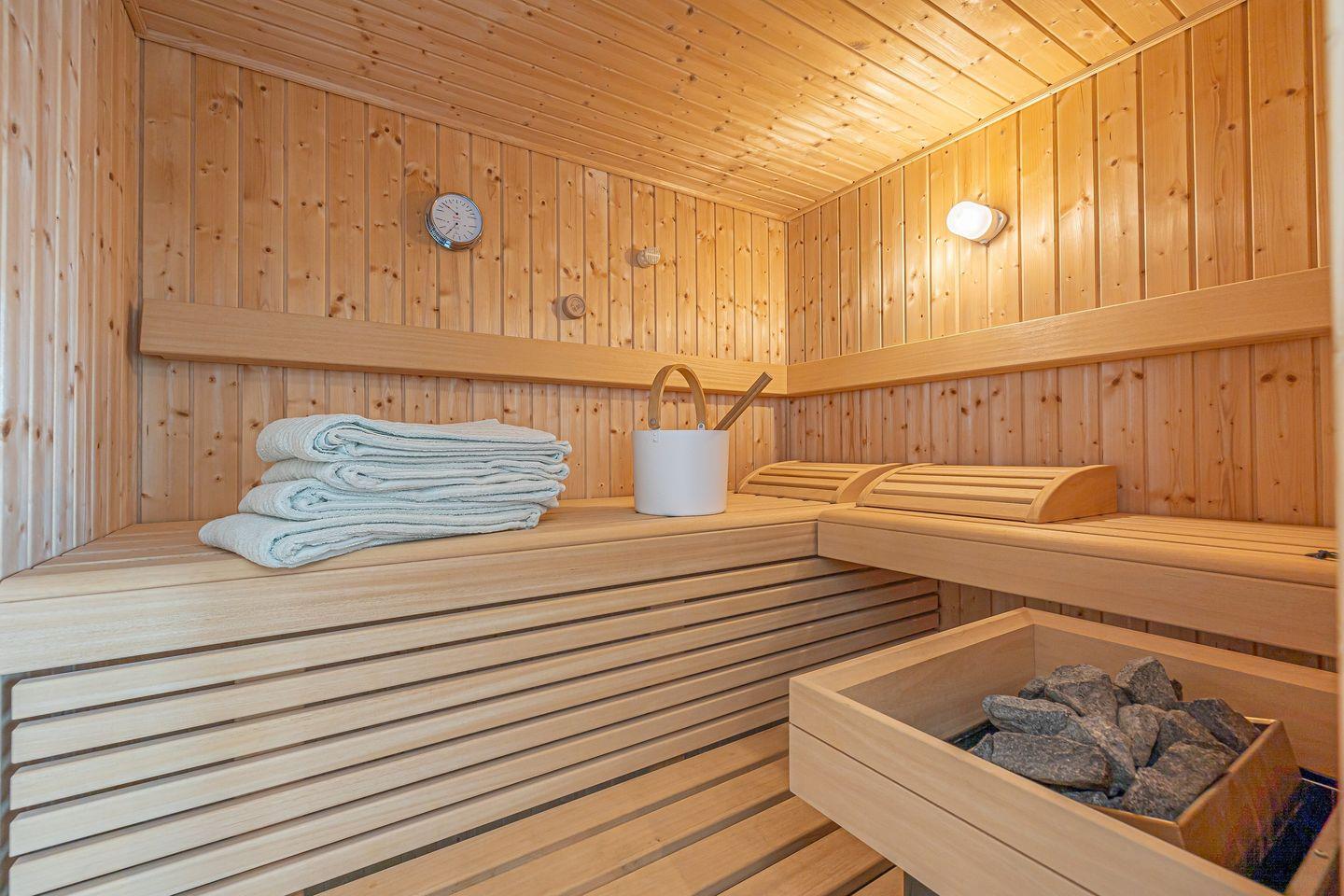 Wellness-Liebhaber profitieren von einer finnischen Sauna, die Dir exklusiv zur Verfügung steht.
