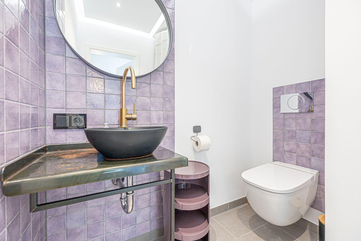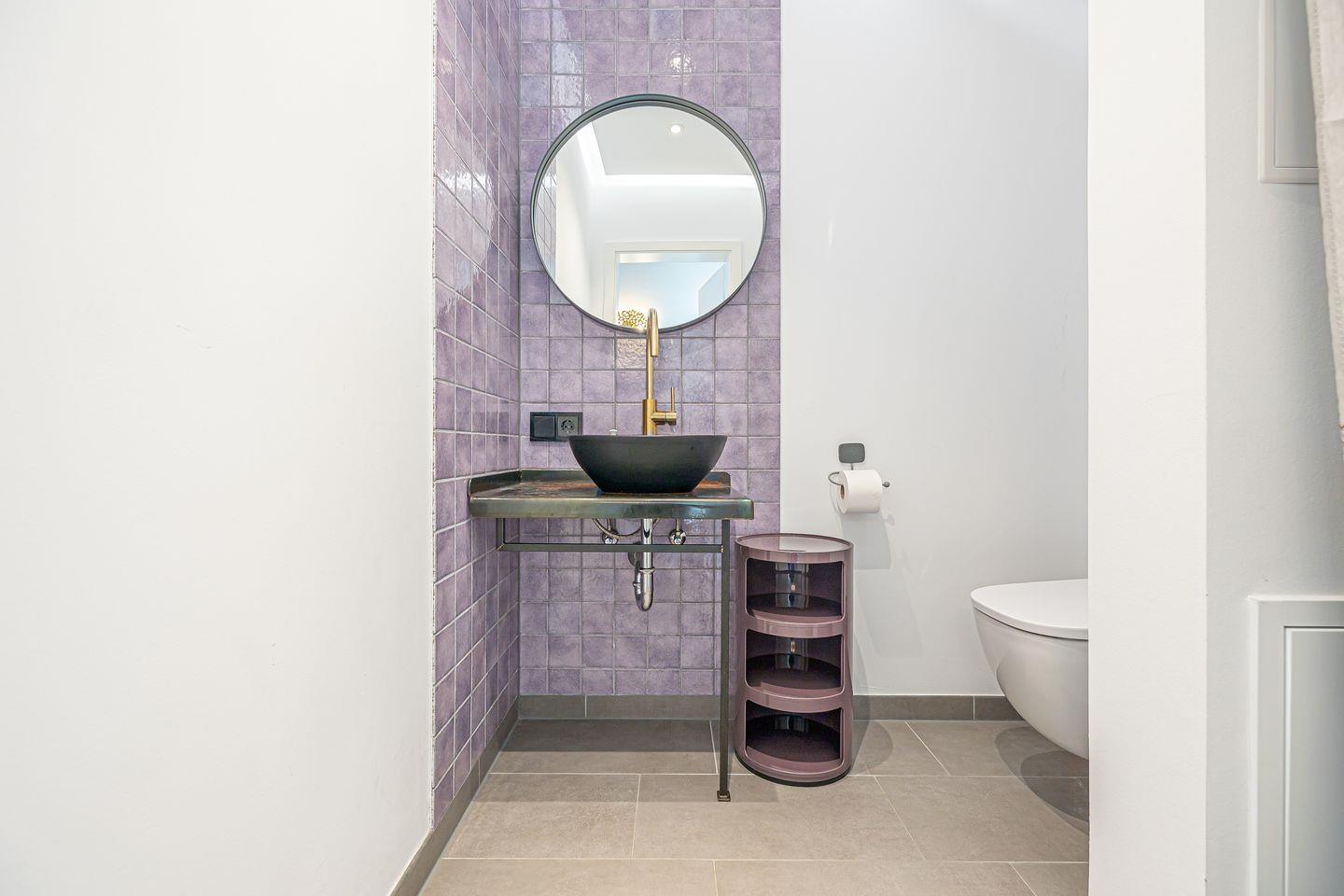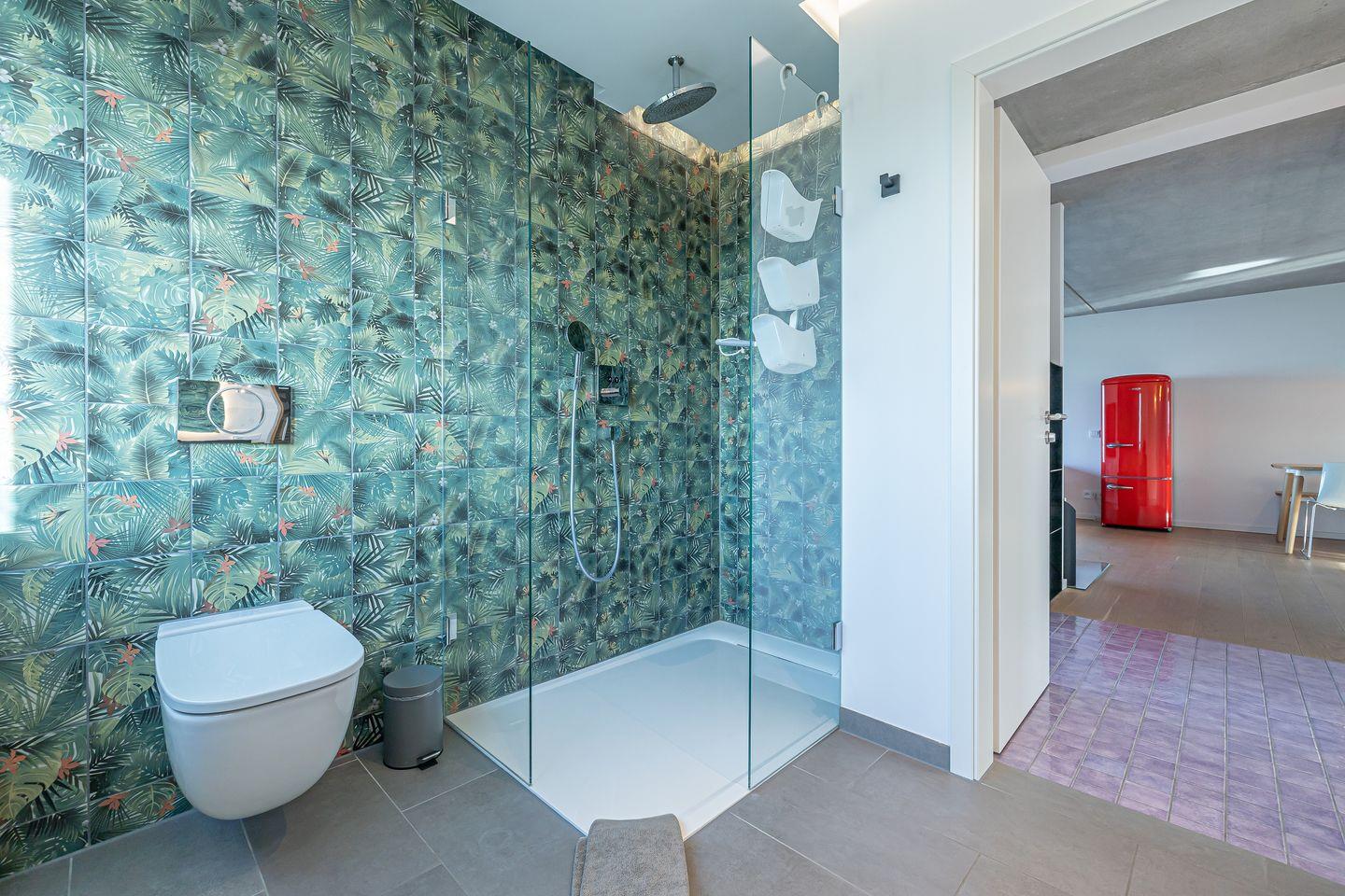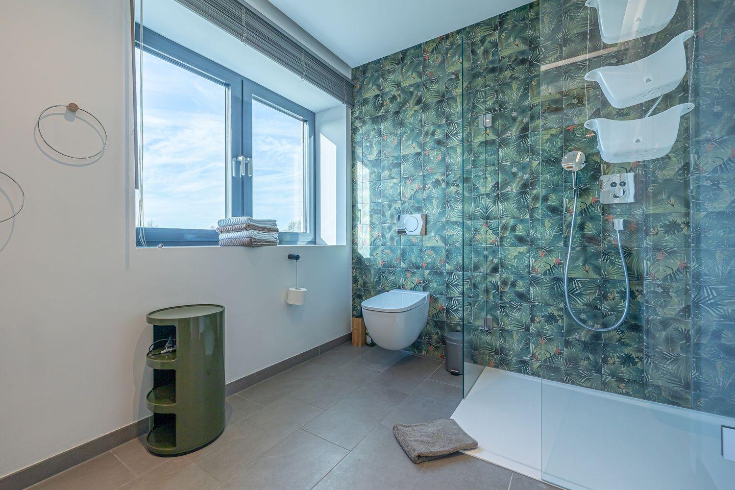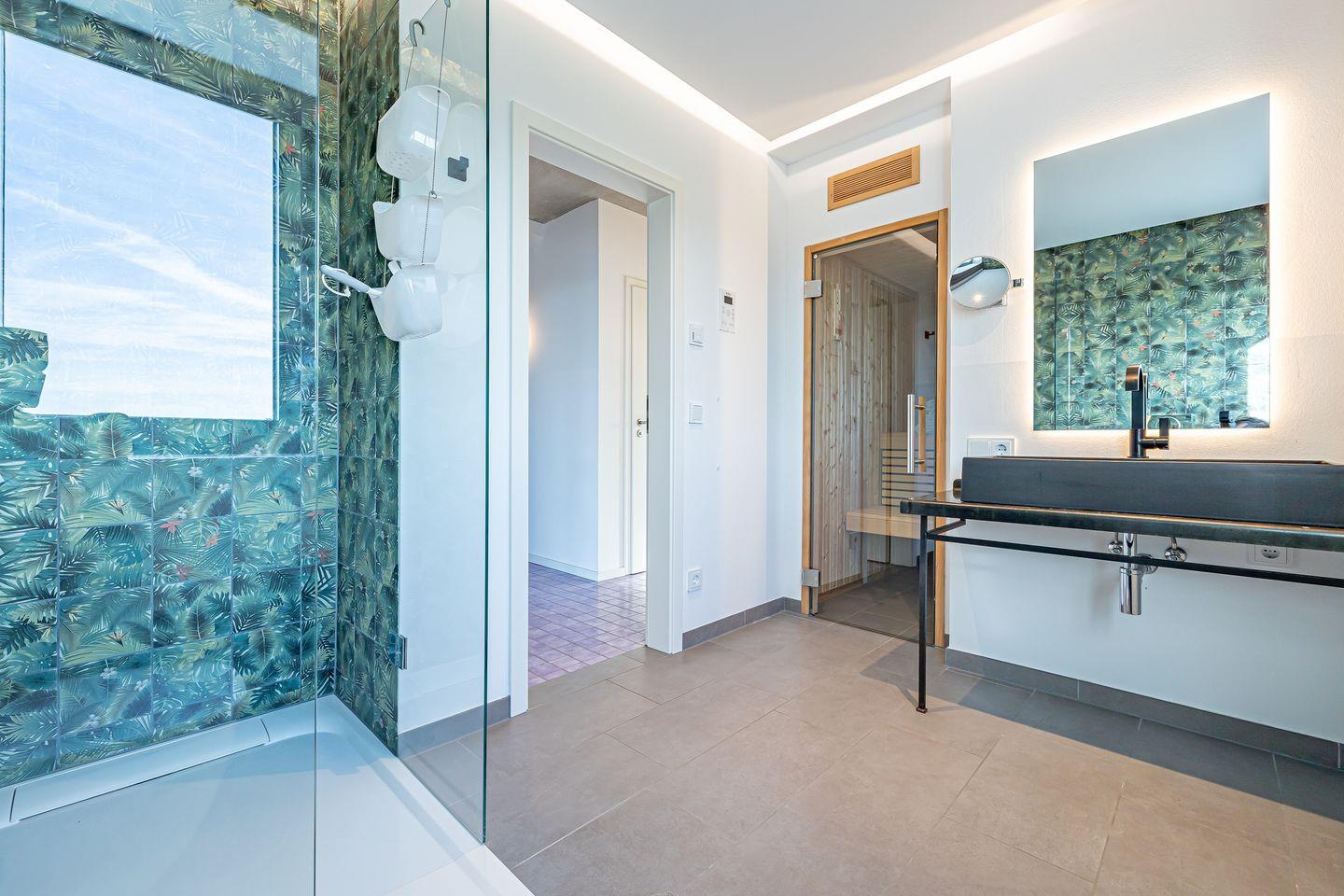 Im Tageslicht-Bad erwarten Dich eine bodengleiche Dusche, ein Föhn sowie ein Kosmetikspiegel, zudem ist ein separates Gäste-WC vorhanden.