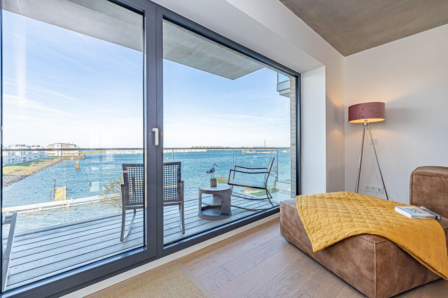 Moderne Ferienwohnung mit Meerblick, Sauna, Balkon und eigenem Parkplatz in Olpenitz.