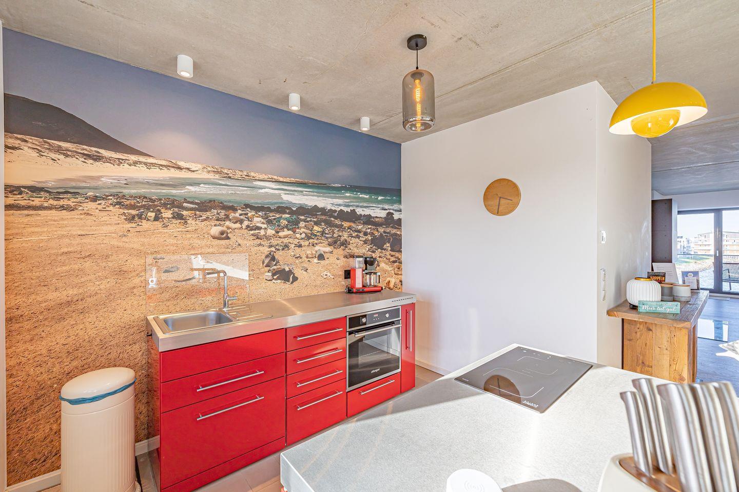 Die moderne Küche ist zum Wohnzimmer hin offen gehalten und überzeugt durch eine umfassende Ausstattung: Neben einem Induktionsherd (2 Platten), Toaster und Spülmaschine findest Du hier auch eine Espresso- und eine Kaffeemaschine, einen Sandwichmaker, Mixer und Pürierstab sowie sämtliche Küchenutensilien, Geschirr und Besteck für ein komfortables Kocherlebnis.