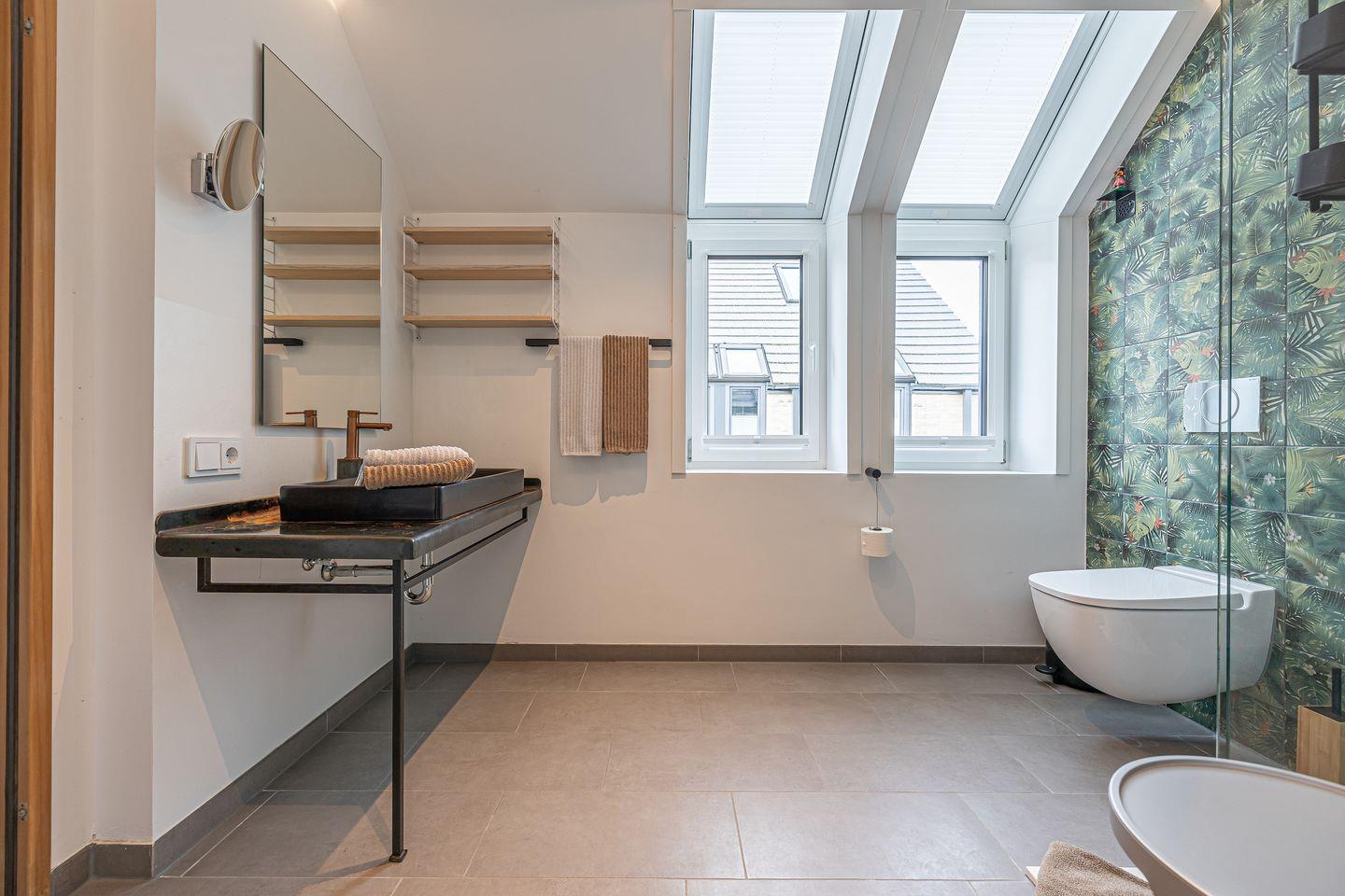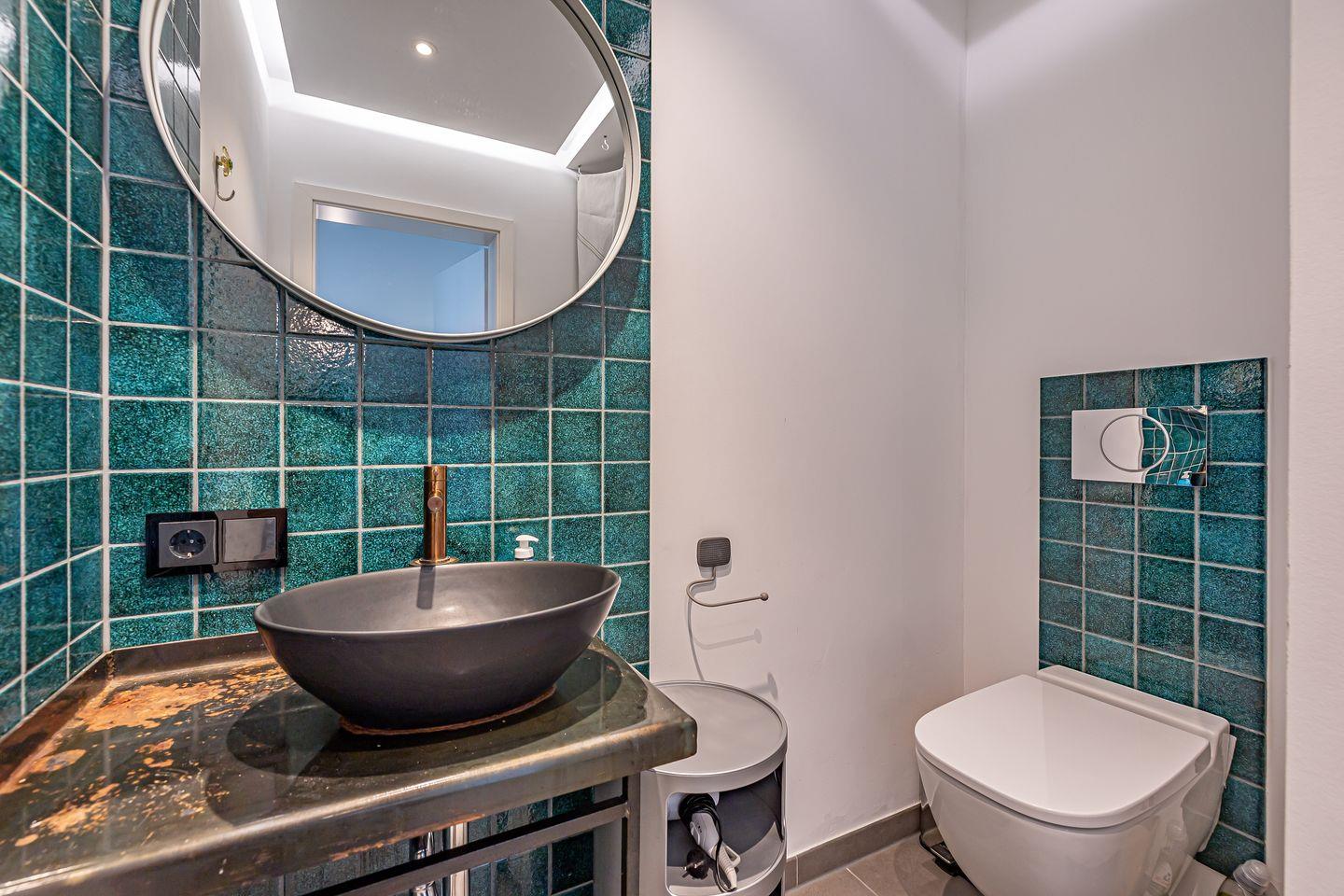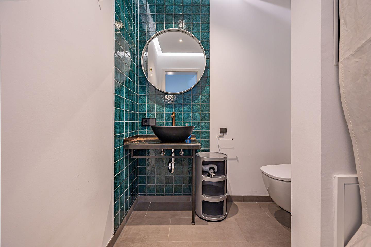 Im Tageslicht-Bad erwarten Dich eine bodengleiche Dusche, ein Föhn sowie ein Kosmetikspiegel, zudem ist ein separates Gäste-WC vorhanden.