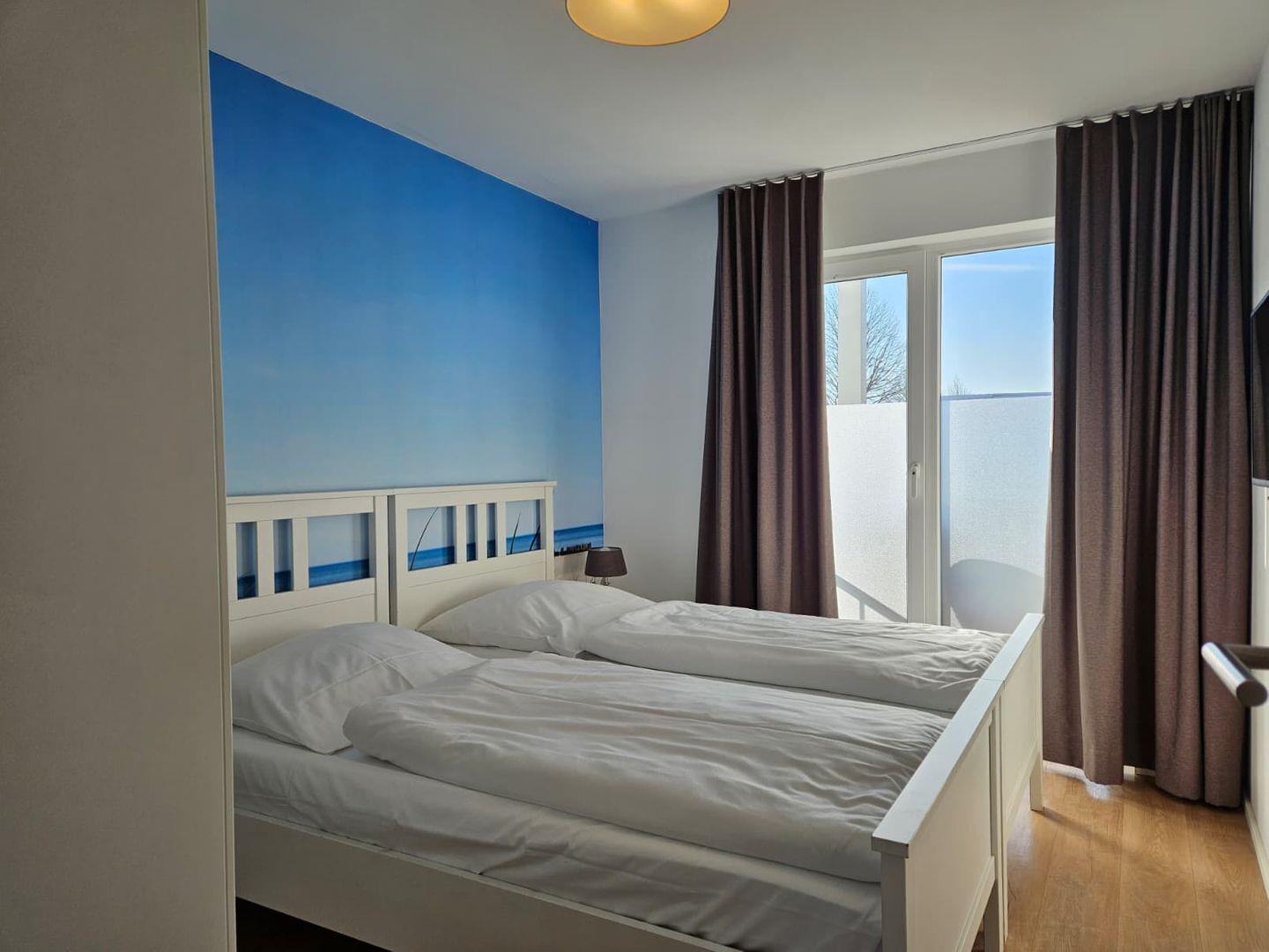 Die Wohnung verfügt über zwei Schlafzimmer mit insgesamt vier Schlafmöglichkeiten. Eines der Schlafzimmer ist mit einem Doppelbett, das andere mit 2 Einzelbetten, ausgestattet. Beide Schlafzimmer verfügen ebenfalls über je einen TV, Verdunkelungsmöglichkeiten und einem Kleiderschrank.