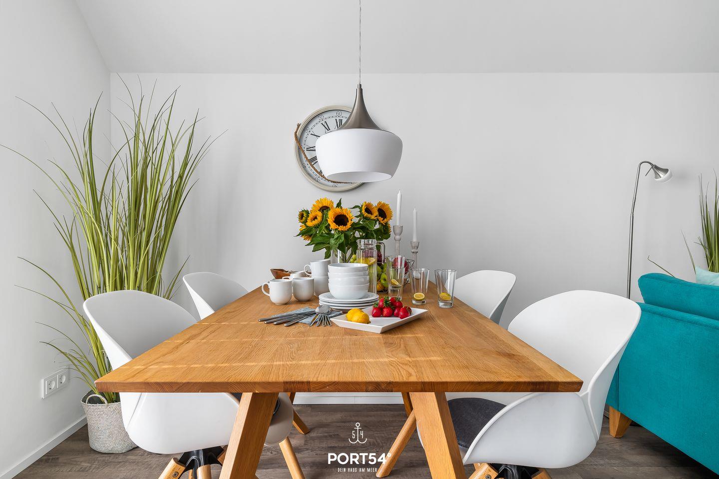 Der offen gestaltete Wohnbereich mit Sofa, Sessel und Essplatz schafft eine einladende Atmosphäre für gemeinsame Stunden. Im Wohnbereich und in beiden Schlafzimmern steht Dir jeweils ein Fernseher zur Verfügung, WLAN ist selbstverständlich vorhanden. Kaminofen und Fußbodenheizung sorgen ganzjährig für eine behagliche Atmosphäre.