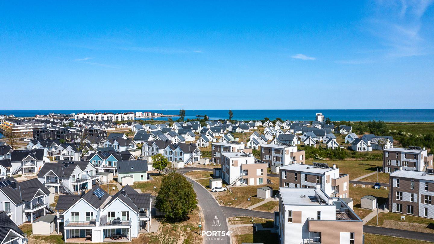 Auf dem Balkon mit Gartenmöbeln, Strandkorb und Elektrogrill genießt Du einen eingeschränkten Meerblick. Der Strand ist bequem erreichbar, ebenso Einkaufsmöglichkeiten und Restaurants in der Umgebung.
