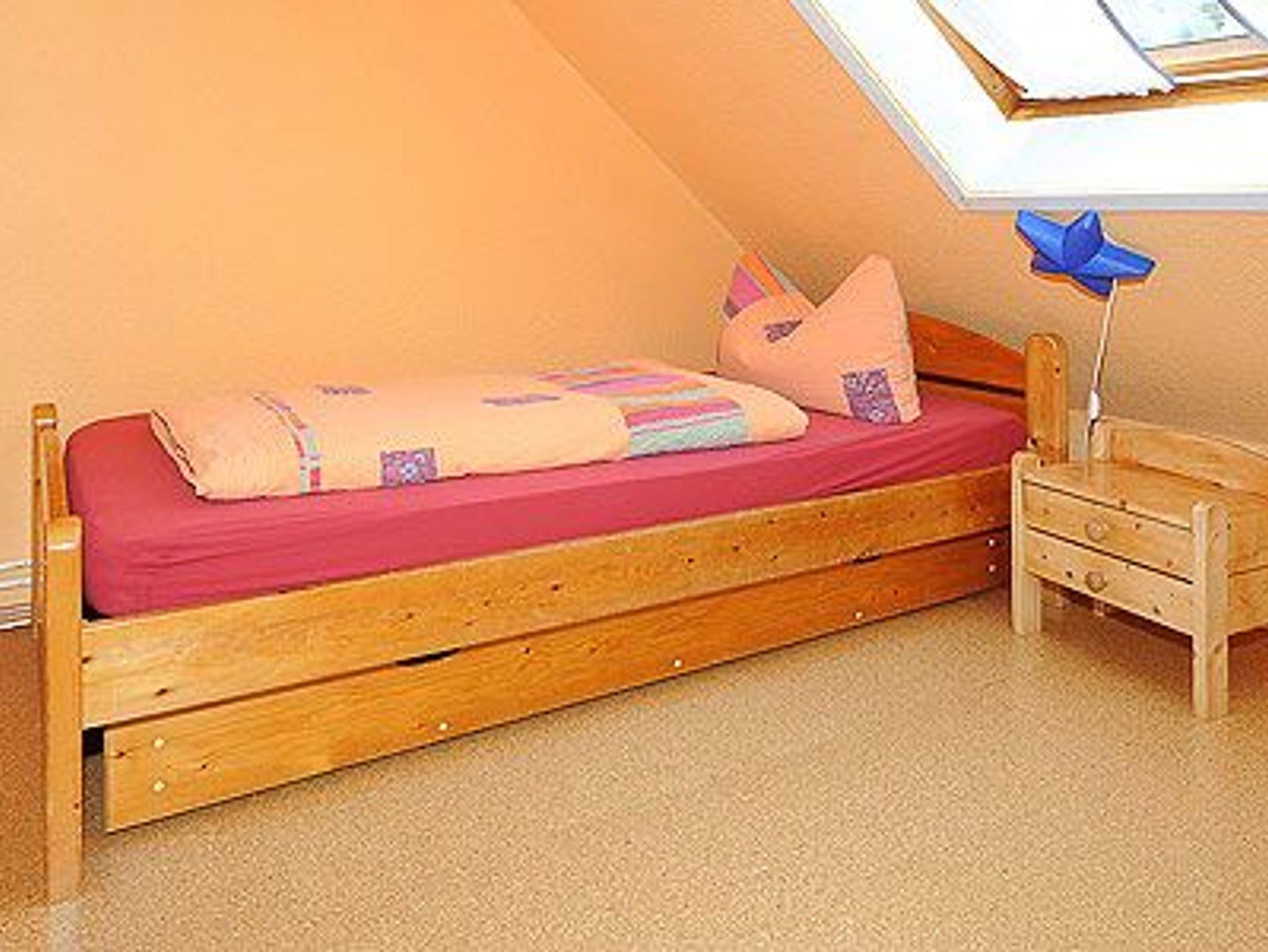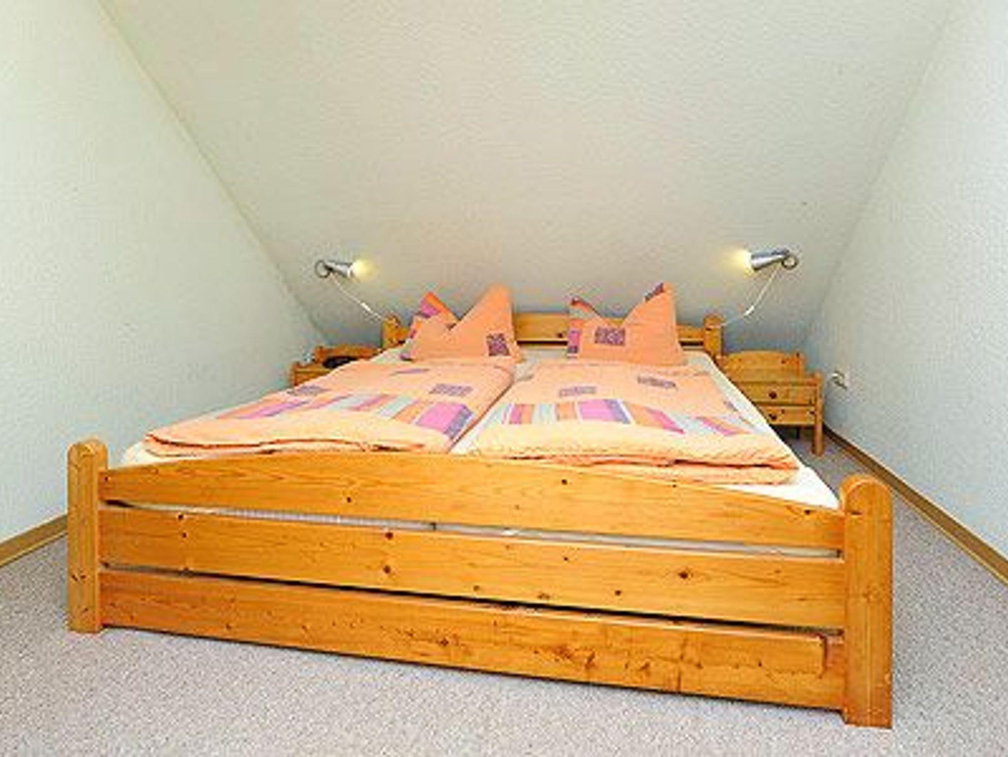 Größe ca. 65 Quadratmeter, Wohnraum mit integrierter Küche, Schlafzimmer, zweites separates, Schlafzimmer/Kinderzimmer, Badezimmer mit Dusche, Waschtisch und WC, Obergeschoss, Terrasse (Sitzgruppe im Garten), optimal für 2 bis 5 Personen und zusätzlich ein Kleinkind.