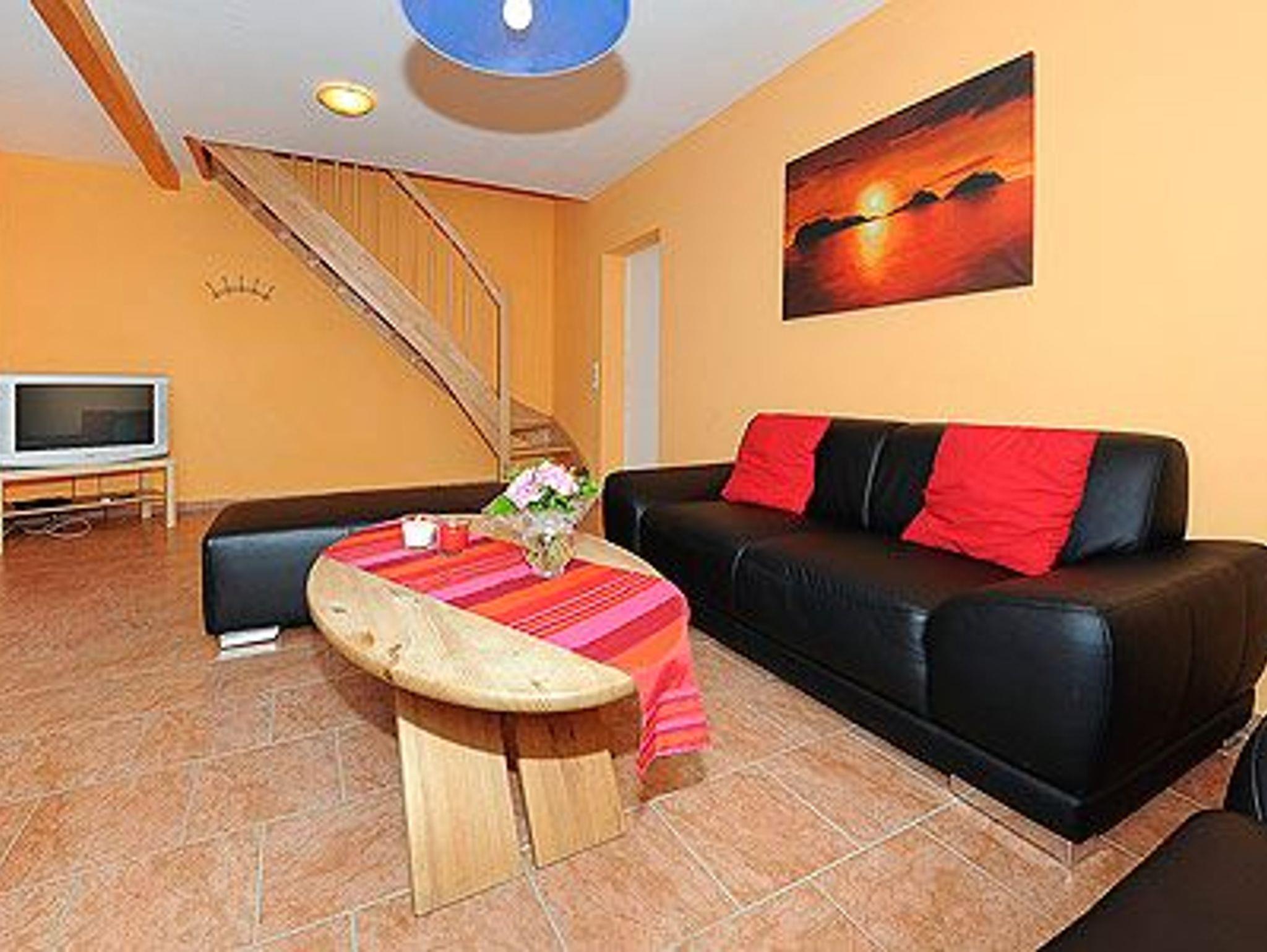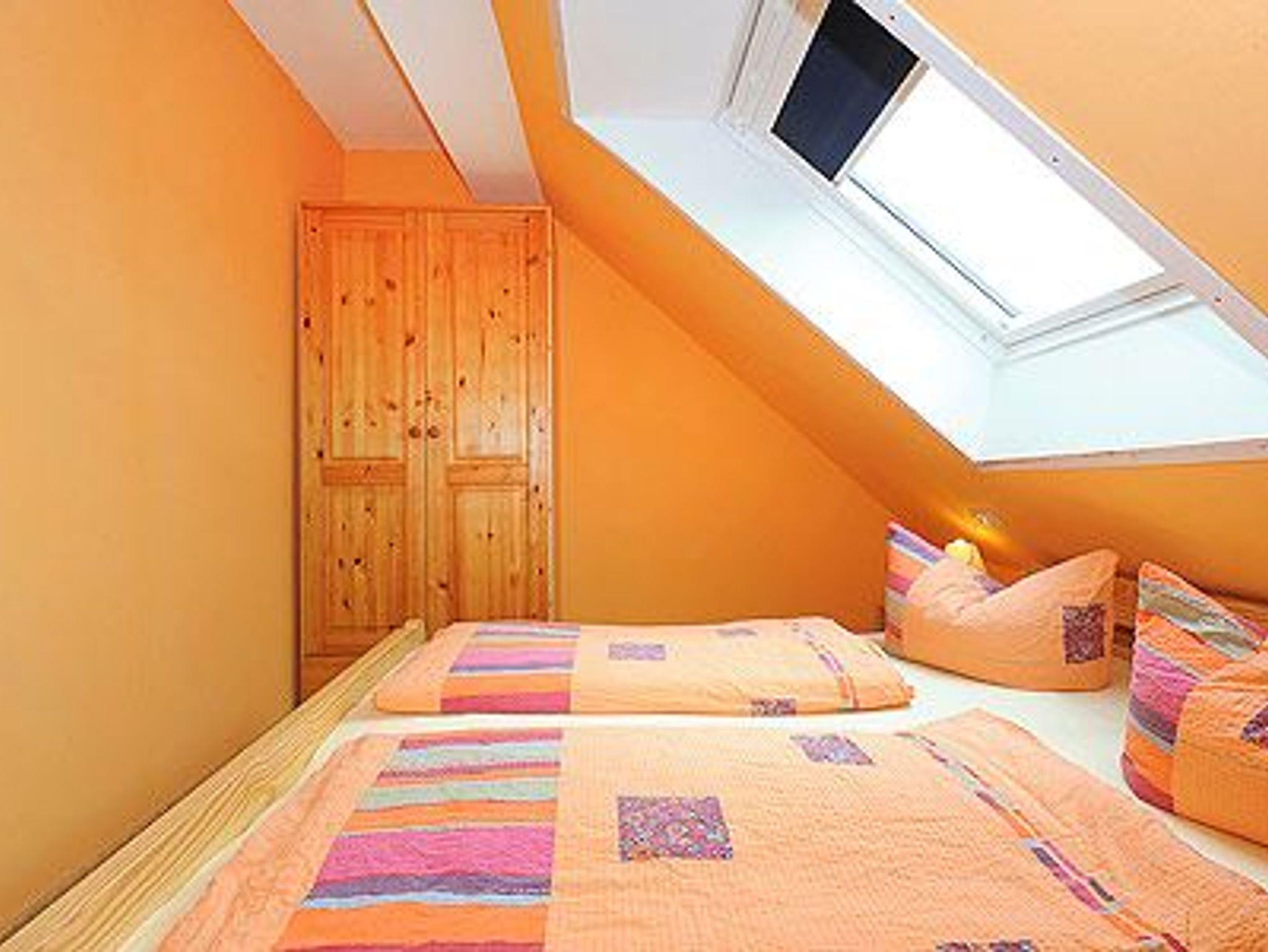 Größe ca. 65 Quadratmeter, Wohnraum mit integrierter Küche, Schlafzimmer, zweites separates, Schlafzimmer/Kinderzimmer, Badezimmer mit Dusche, Waschtisch und WC, Obergeschoss, Terrasse (Sitzgruppe im Garten), optimal für 2 bis 5 Personen und zusätzlich ein Kleinkind.