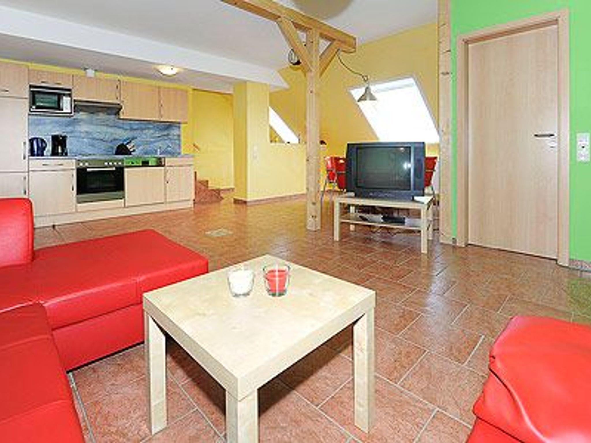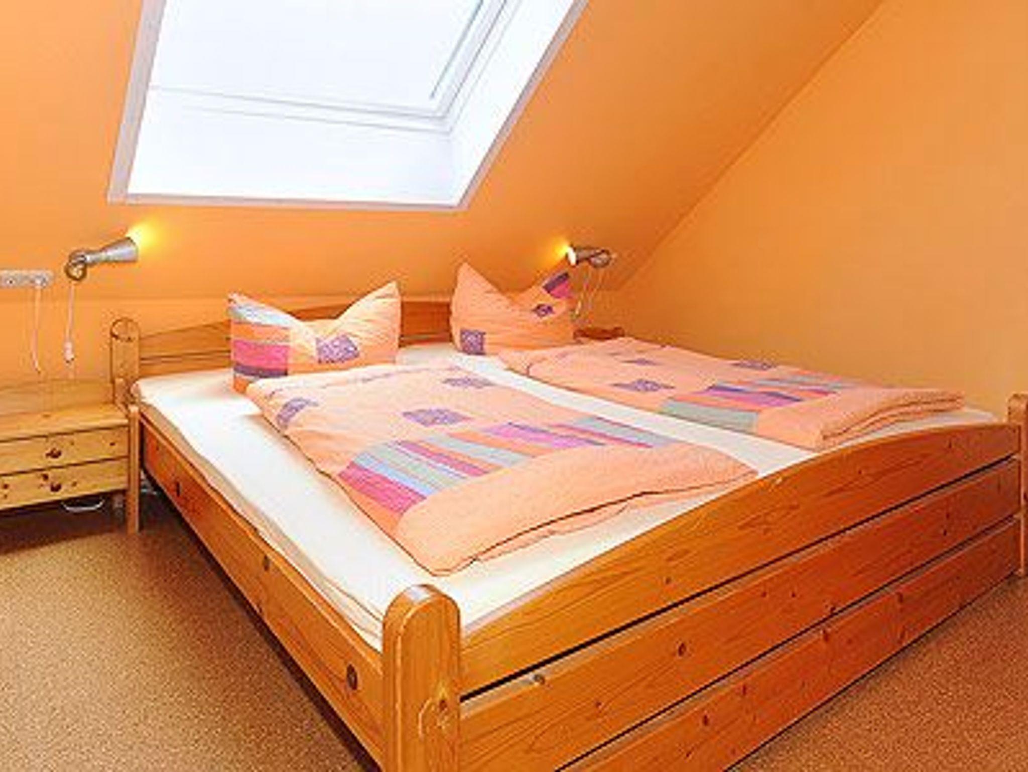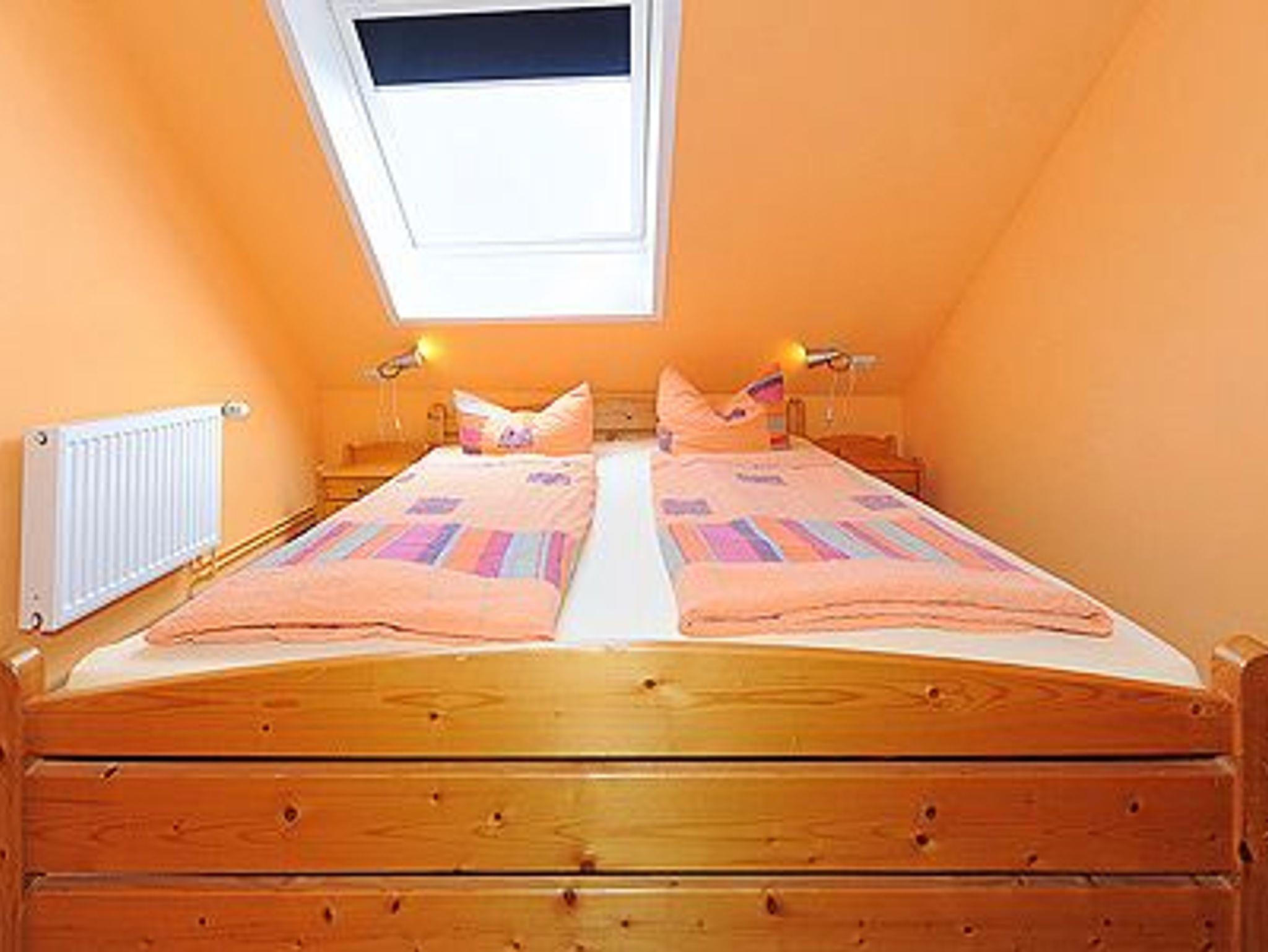 Größe ca. 65 Quadratmeter, Wohnraum mit integrierter Küche, Schlafzimmer, zweites separates, Schlafzimmer/Kinderzimmer, Badezimmer mit Dusche, Waschtisch und WC, Obergeschoss, Terrasse (Sitzgruppe im Garten), optimal für 2 bis 5 Personen und zusätzlich ein Kleinkind.
