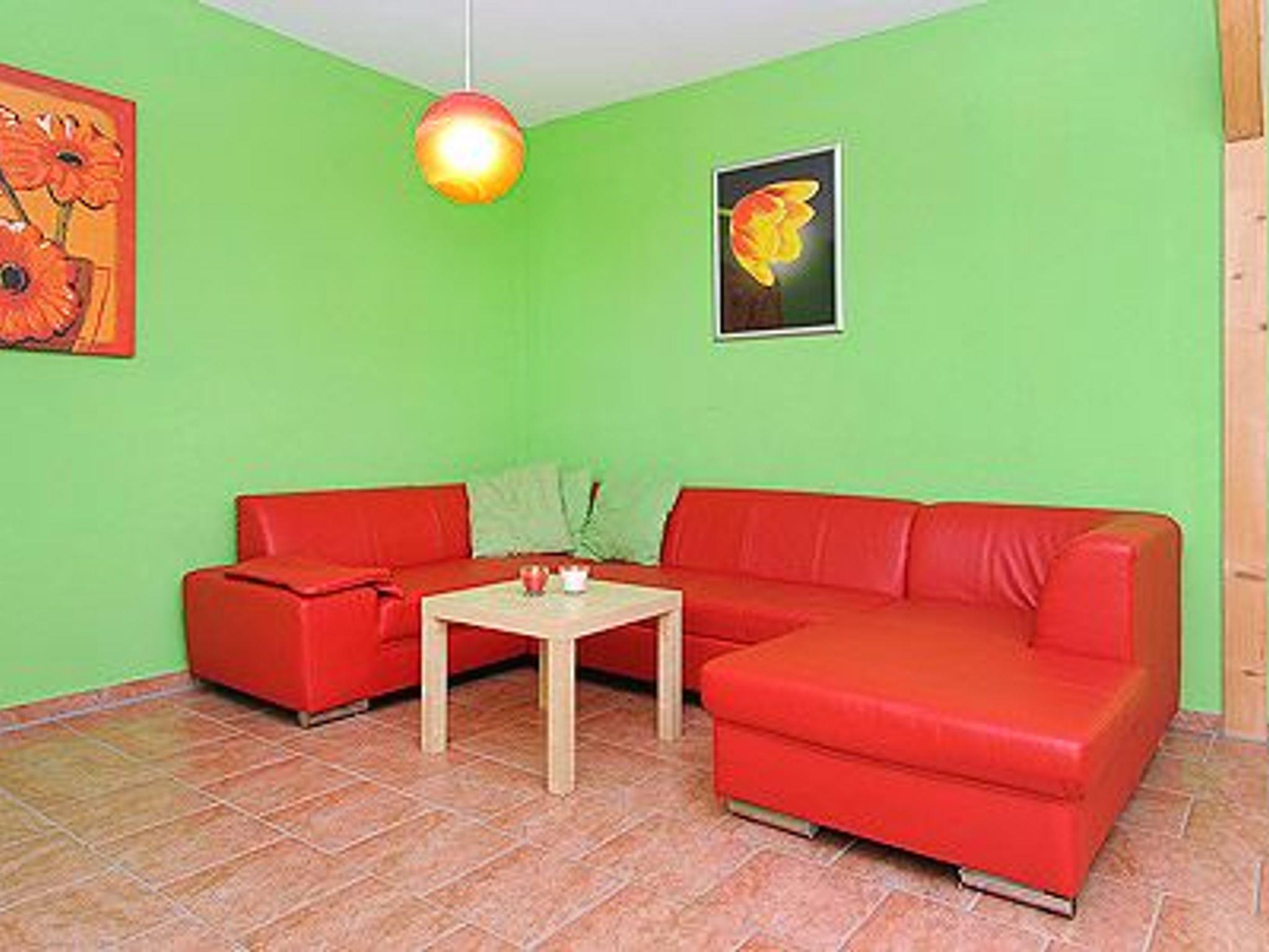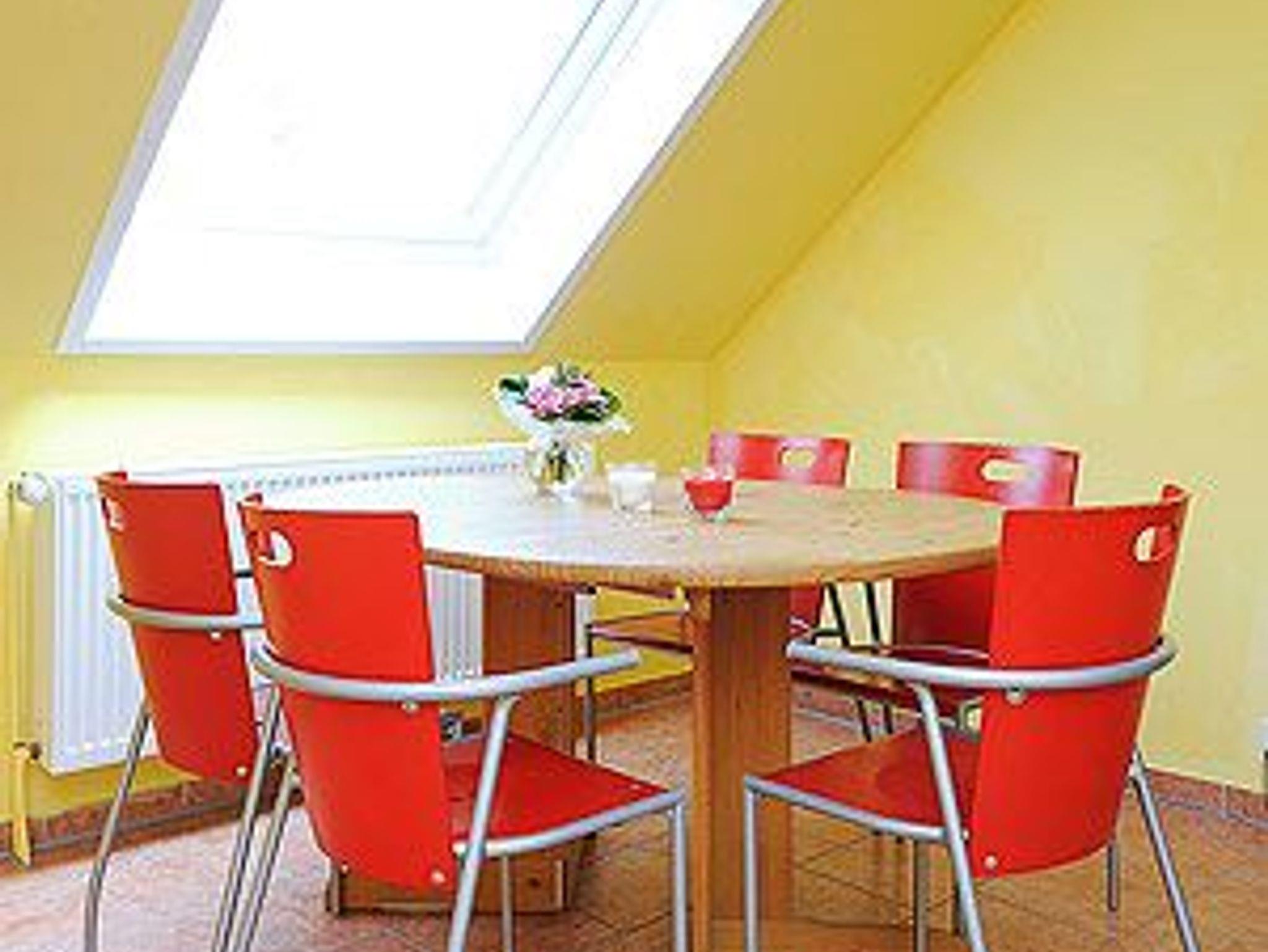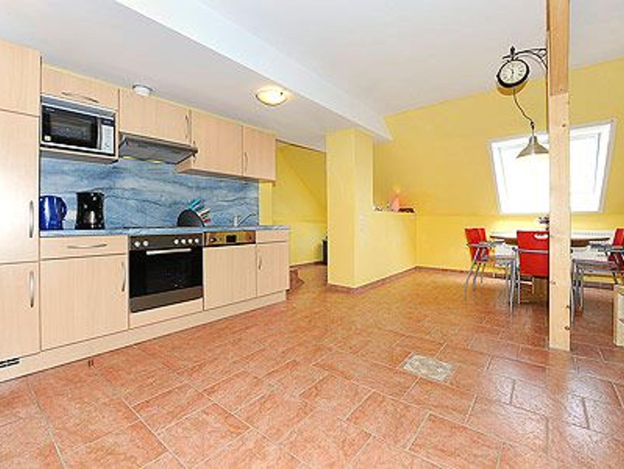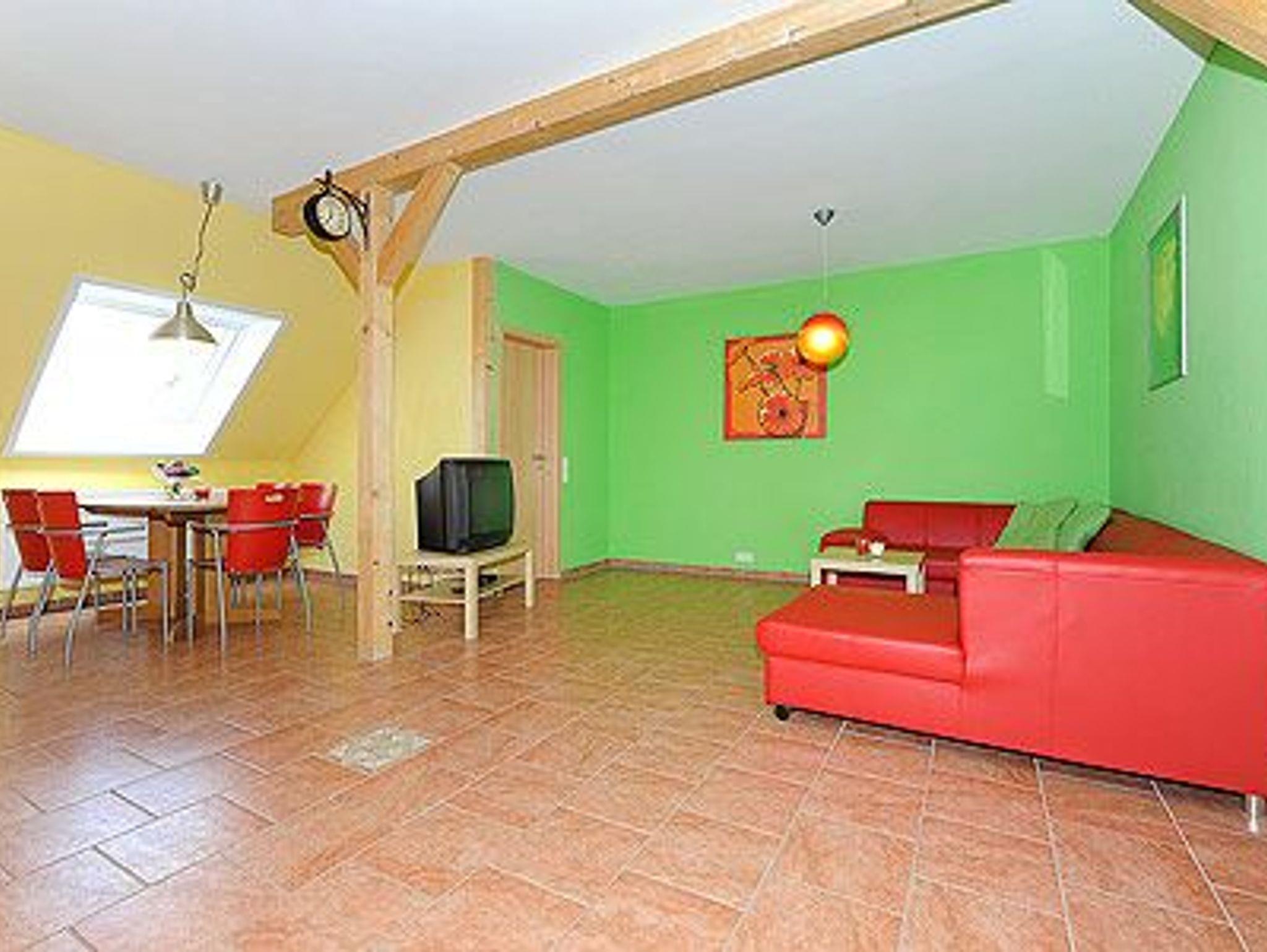 Größe ca. 65 Quadratmeter, Wohnraum mit integrierter Küche, Schlafzimmer, zweites separates, Schlafzimmer/Kinderzimmer, Badezimmer mit Dusche, Waschtisch und WC, Obergeschoss, Terrasse (Sitzgruppe im Garten), optimal für 2 bis 5 Personen und zusätzlich ein Kleinkind.