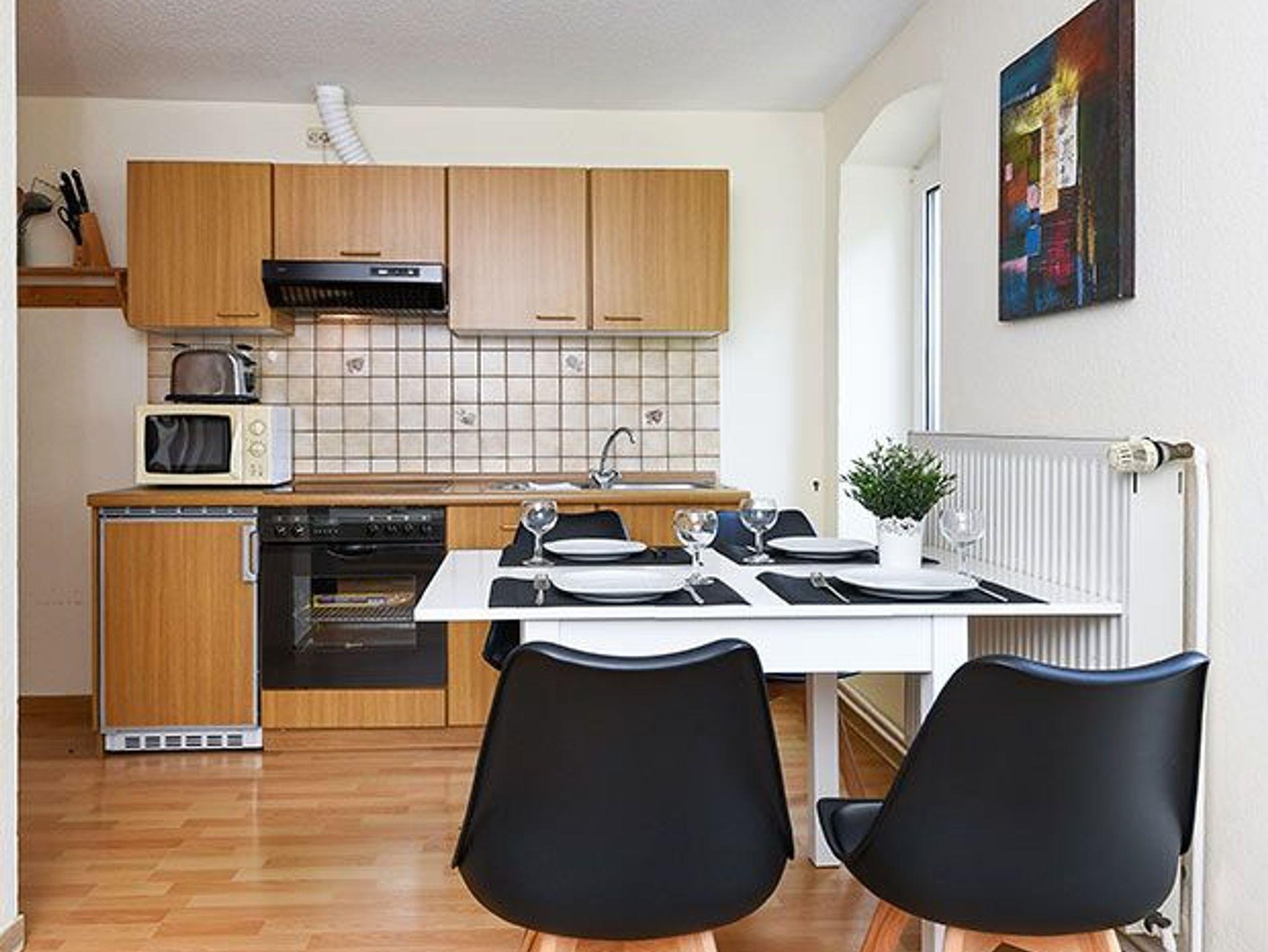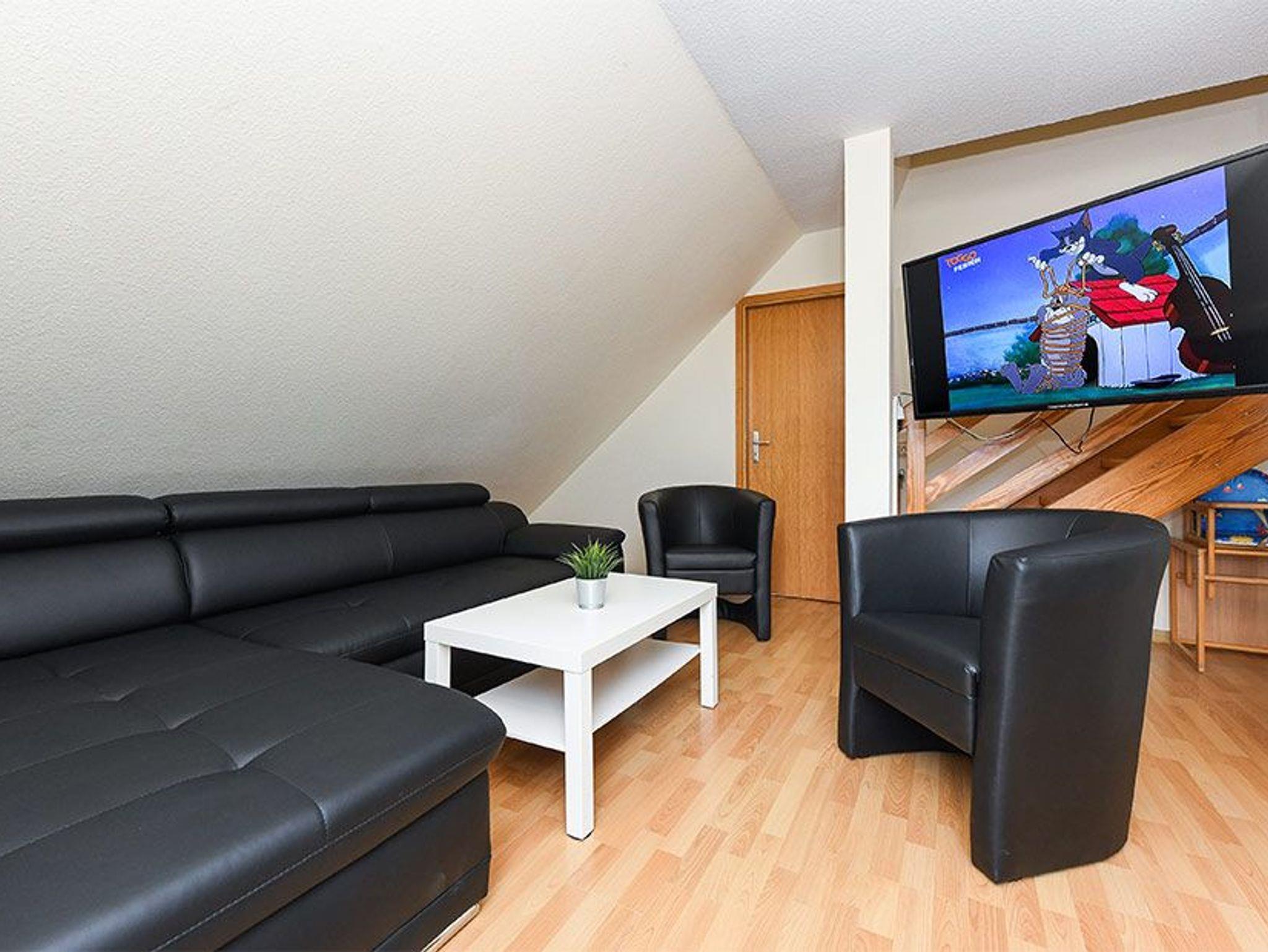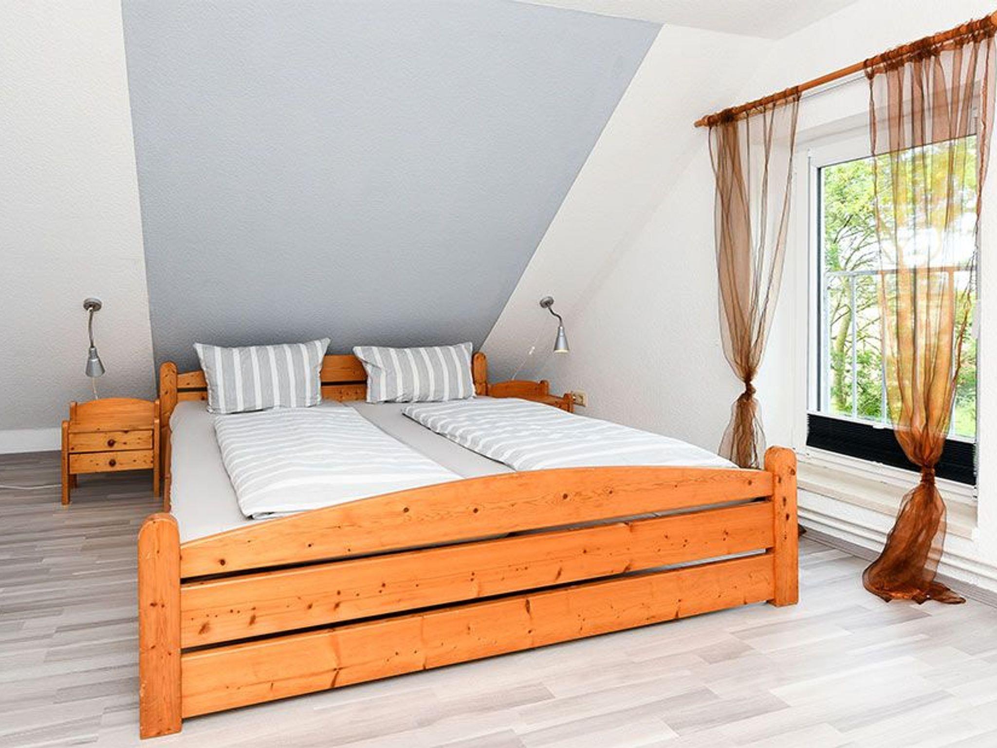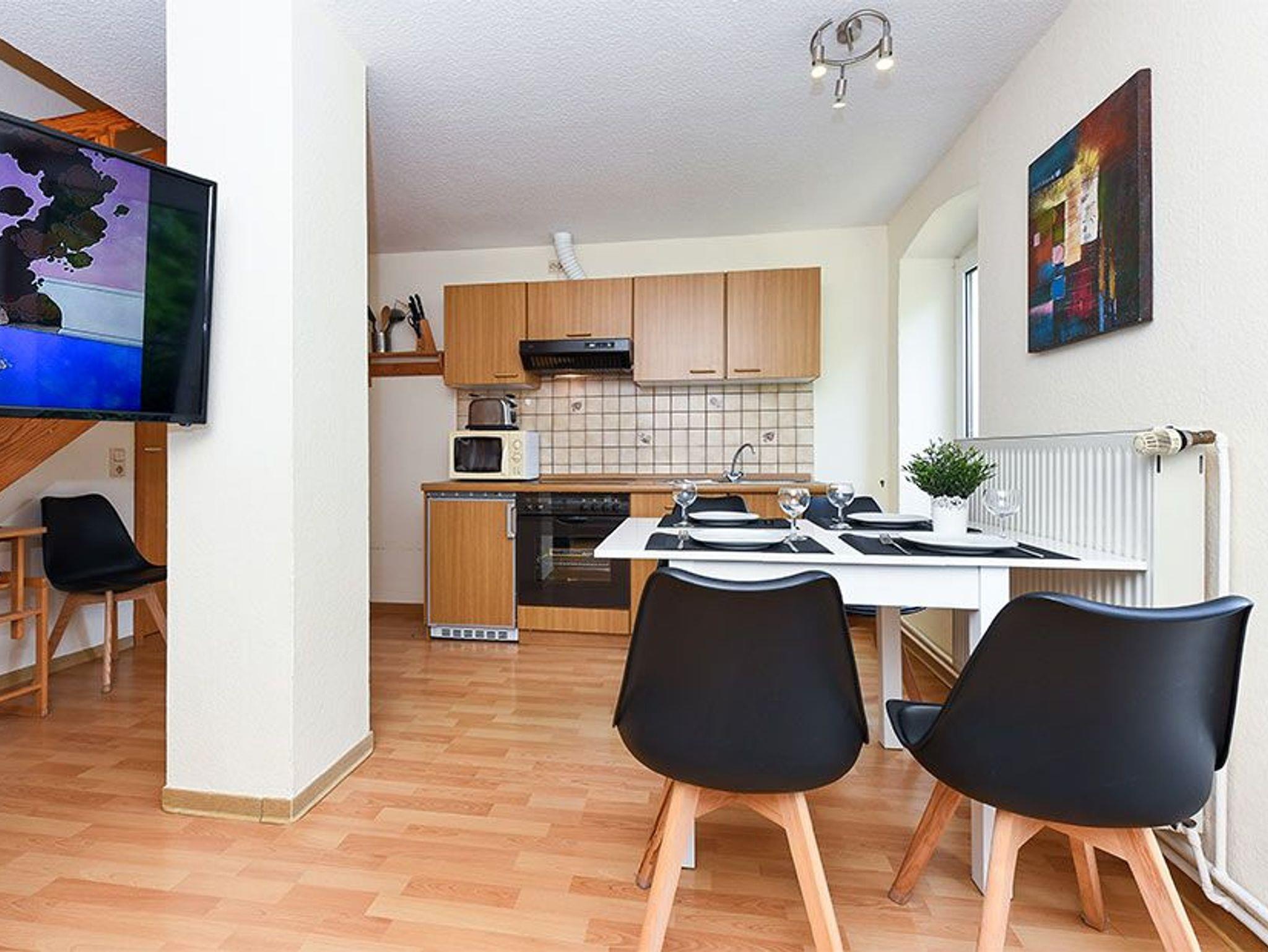 Größe ca. 65 Quadratmeter, Wohnraum mit integrierter Küche, Schlafzimmer, zweites separates, Schlafzimmer/Kinderzimmer, Badezimmer mit Dusche, Waschtisch und WC, Obergeschoss, Terrasse (Sitzgruppe im Garten), optimal für 2 bis 5 Personen und zusätzlich ein Kleinkind.