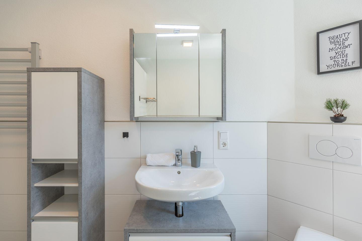 Für ein angenehmes Wohnklima sorgen Heizung und Fußbodenheizung, während der Sichtschutz an allen Fenstern Ihre Privatsphäre gewährleistet. Das Badezimmer verfügt sowohl über eine Dusche als auch eine Badewanne.