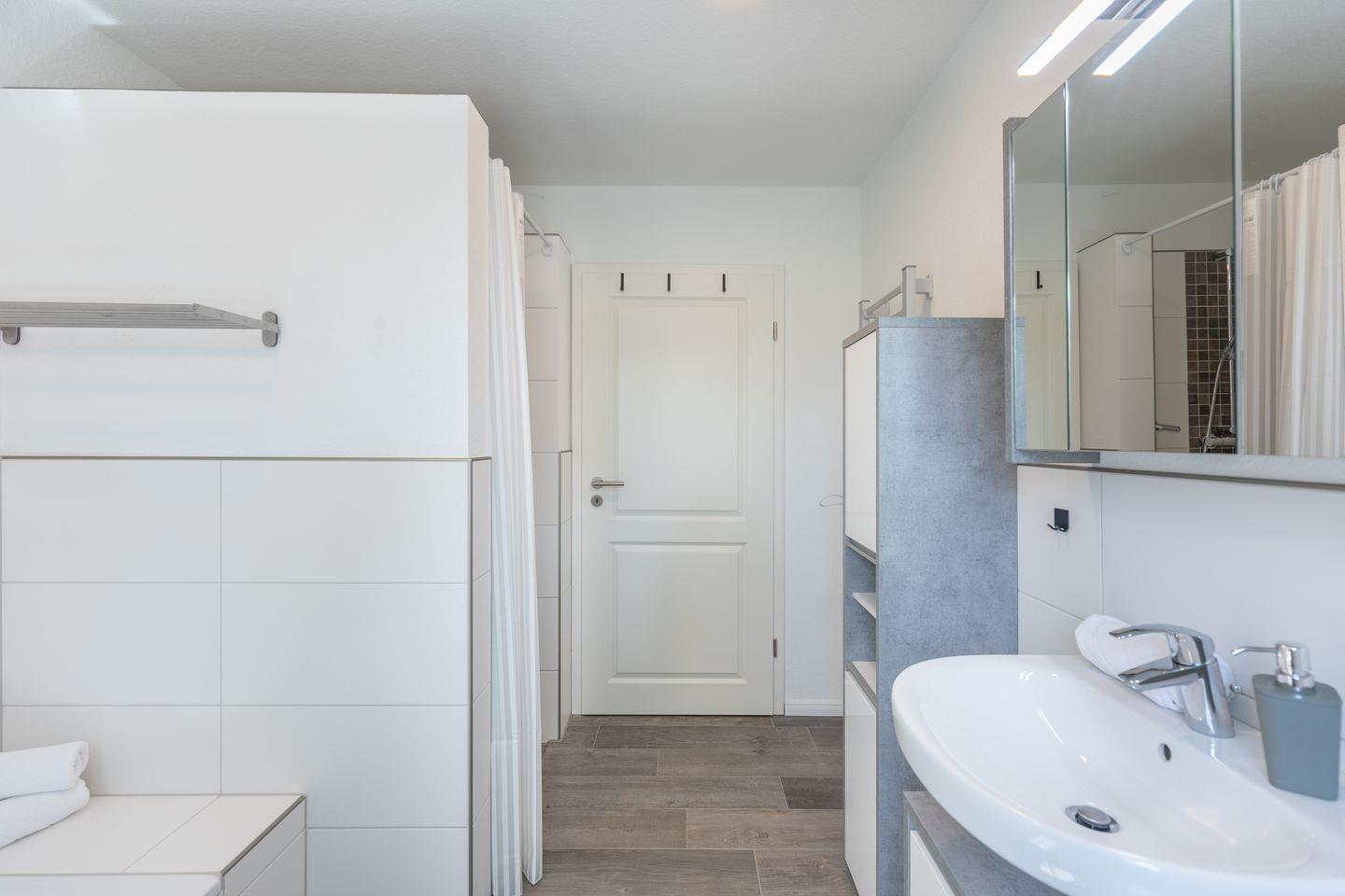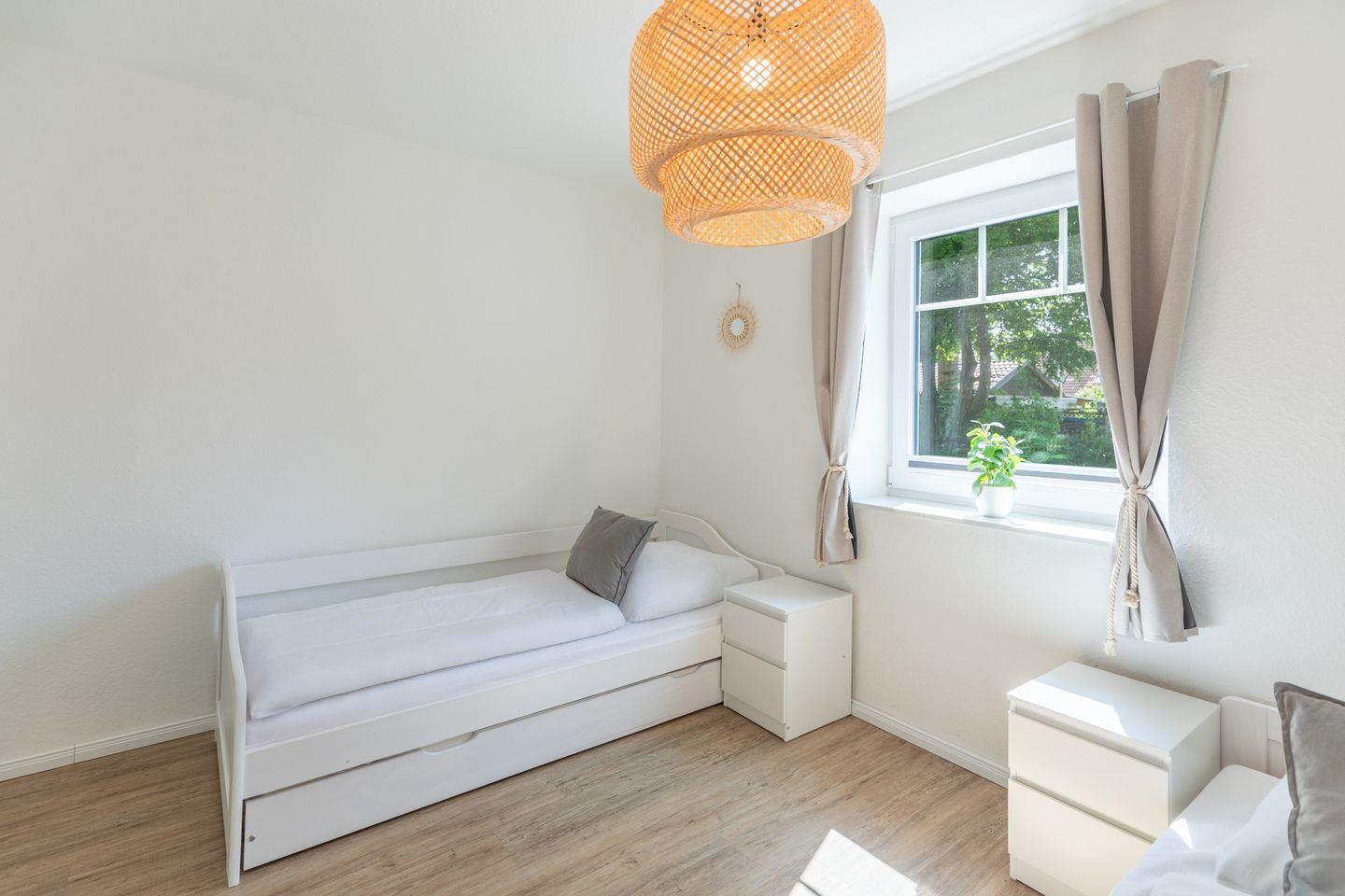 Dieses 2021 erbaute, rund 85 m² große Ferienhaus (Doppelhaushälfte) überzeugt durch seine großzügige Raumaufteilung und hochwertige Ausstattung. Alles befindet sich ebenerdig: Drei helle Zimmer, darunter zwei gemütliche Schlafzimmer und ein modernes Badezimmer, bieten Platz zum Wohlfühlen und Entspannen.