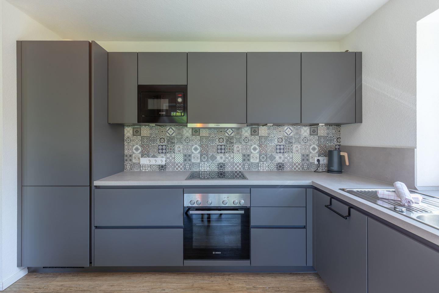 Der offen gestaltete Wohnbereich ist mit einer gemütlichen Sofaecke, einem Essbereich und Satelliten-TV ausgestattet. Die moderne Küche lässt mit Ceranfeld, Backofen, Mikrowelle, Spülmaschine und weiteren Küchenutensilien keine Wünsche offen. Ein Esstisch, Geschirrhandtücher sowie Kaffeemaschine und Toaster komplettieren die Kücheneinrichtung.
