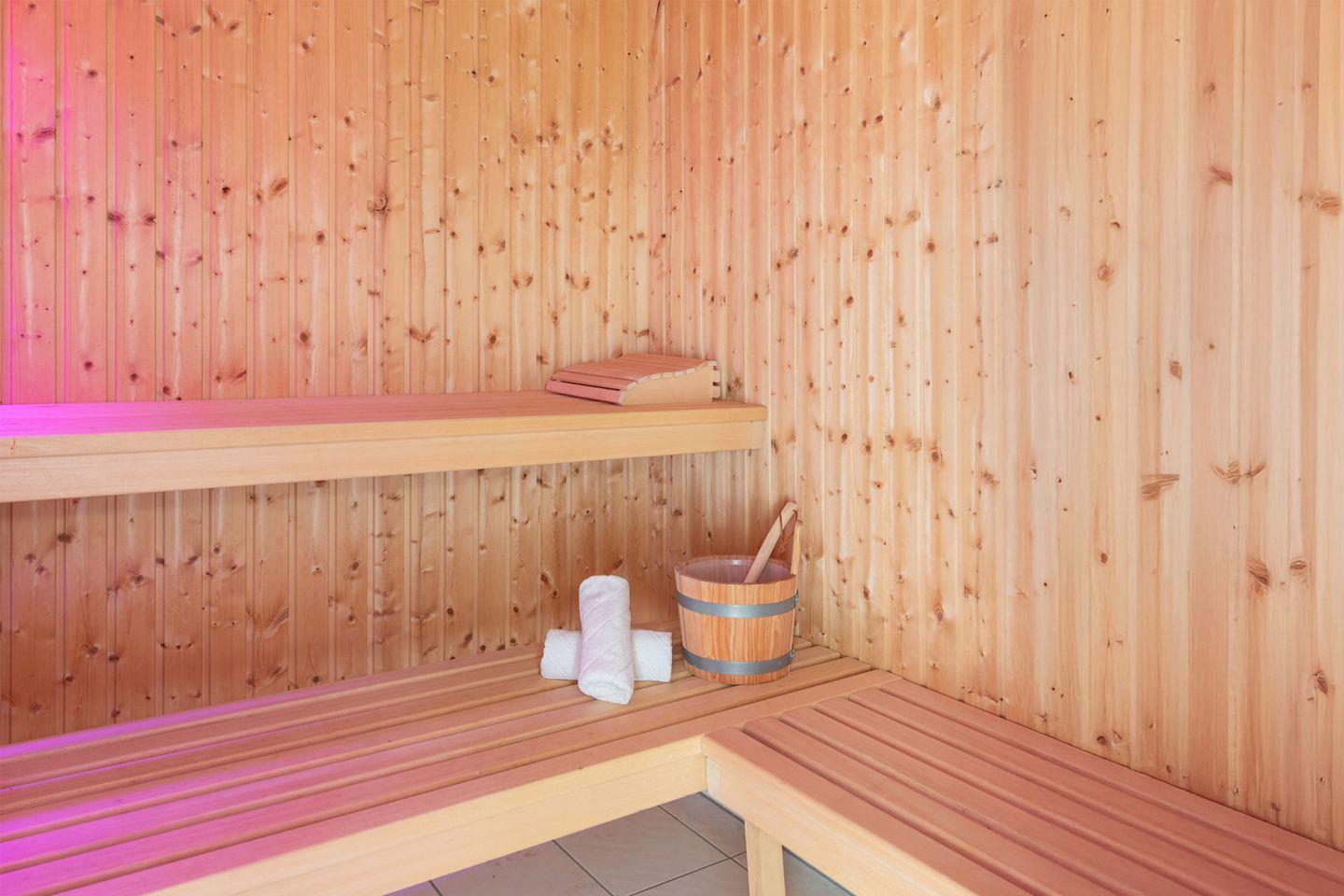 Ebenfalls im Erdgeschoss erwartet Sie eine Sauna für entspannte Auszeiten. Warme Holzbänke, ruhige Materialien und ein geschützter Raum schaffen die passende Atmosphäre zum Abschalten. Nach einem Tag an der Nordsee genießen Sie hier wohltuende Wärme und Erholung. Direkt neben der Sauna befindet sich ein separates Gäste WC.