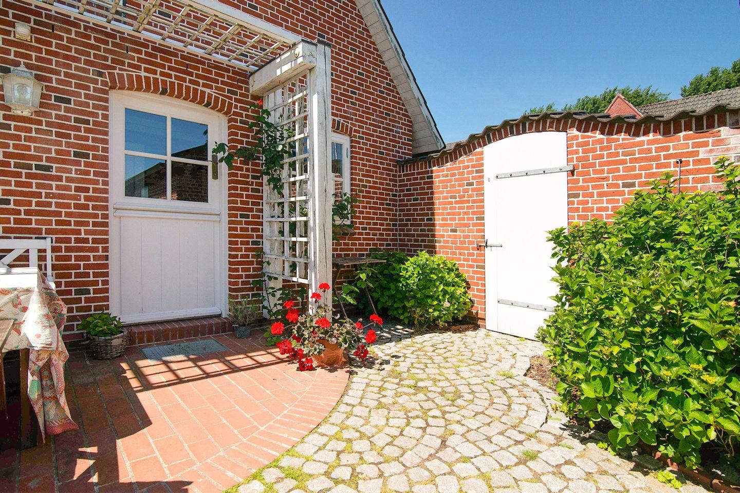 Vom Wohnzimmer aus besteht ein direkter Zugang zum Garten und zur Terrasse. Die Terrasse eignet sich ideal für Mahlzeiten im Freien oder entspannte Stunden in der Sonne. Der großzügige Garten bietet viel Platz, Ruhe und einen schönen Blick ins Grüne. Hier genießen Sie Privatsphäre und echte Nordsee Gelassenheit.