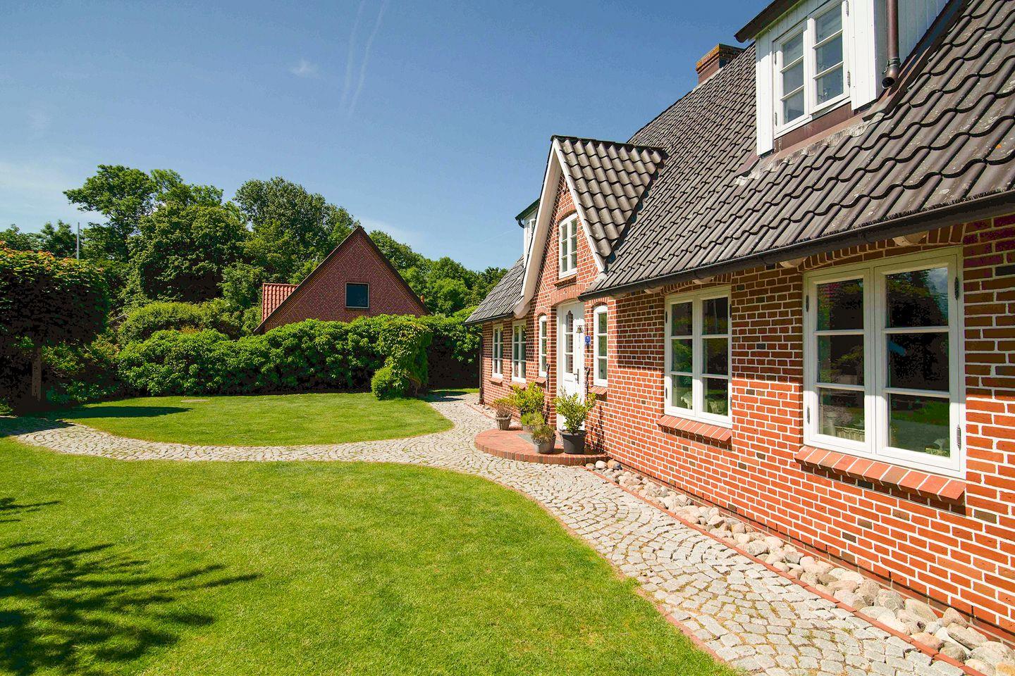 Ferienhaus Nordstern in Osterhever bietet modernen Komfort mit Sauna, großem Garten und Kaminofen für erholsame Nordseeferien.