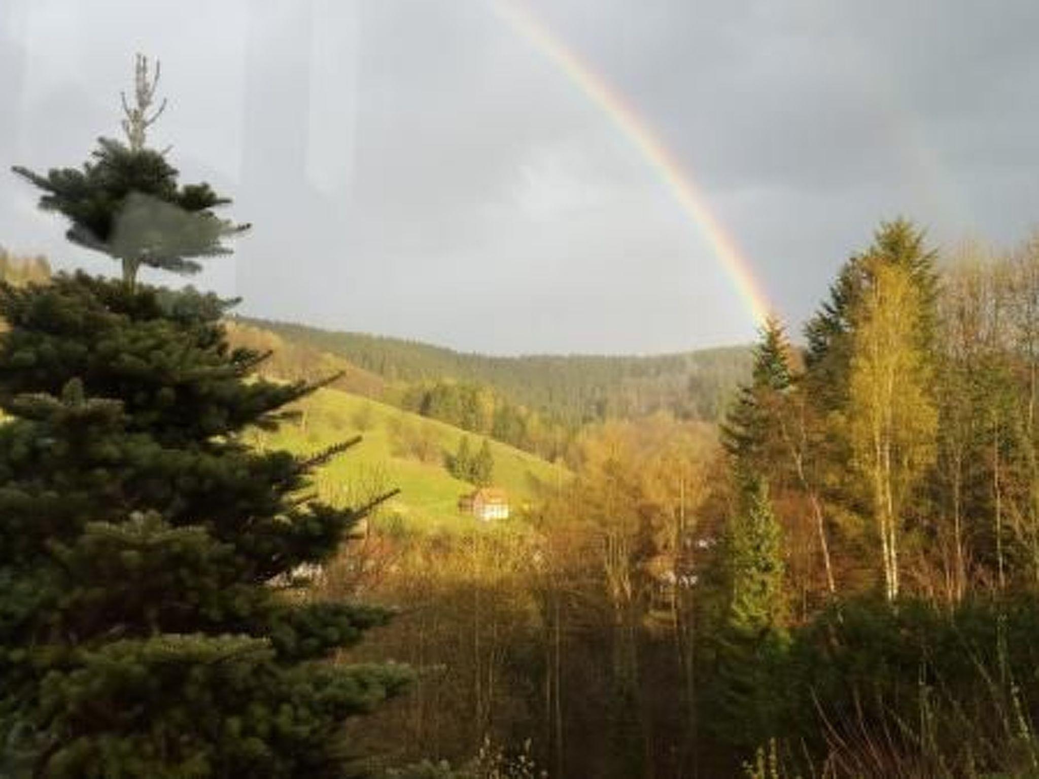 Diese Wohnung befindet sich im 1. Stock eines freistehenden Hauses mit Garten - wahrlich mittem "im Grünen" - direkt zu Fuße der umliegenden Berge noch vor den Lerbacher Serpentinen nahe des Skihangs und NaturErlebnisParks und ist unterteilt in ein Wohnzimmer mit XXL-Couch, Flachbildfernseher, zwei Schlafzimmer mit einem Ehebett (zwei sieben-Zonen Kaltschaum-Matratzen 2,00 m x 0,90 m), sowie ein französisches Bett (1,40 x 2m), ein Wannenbad und eine moderne Küche.