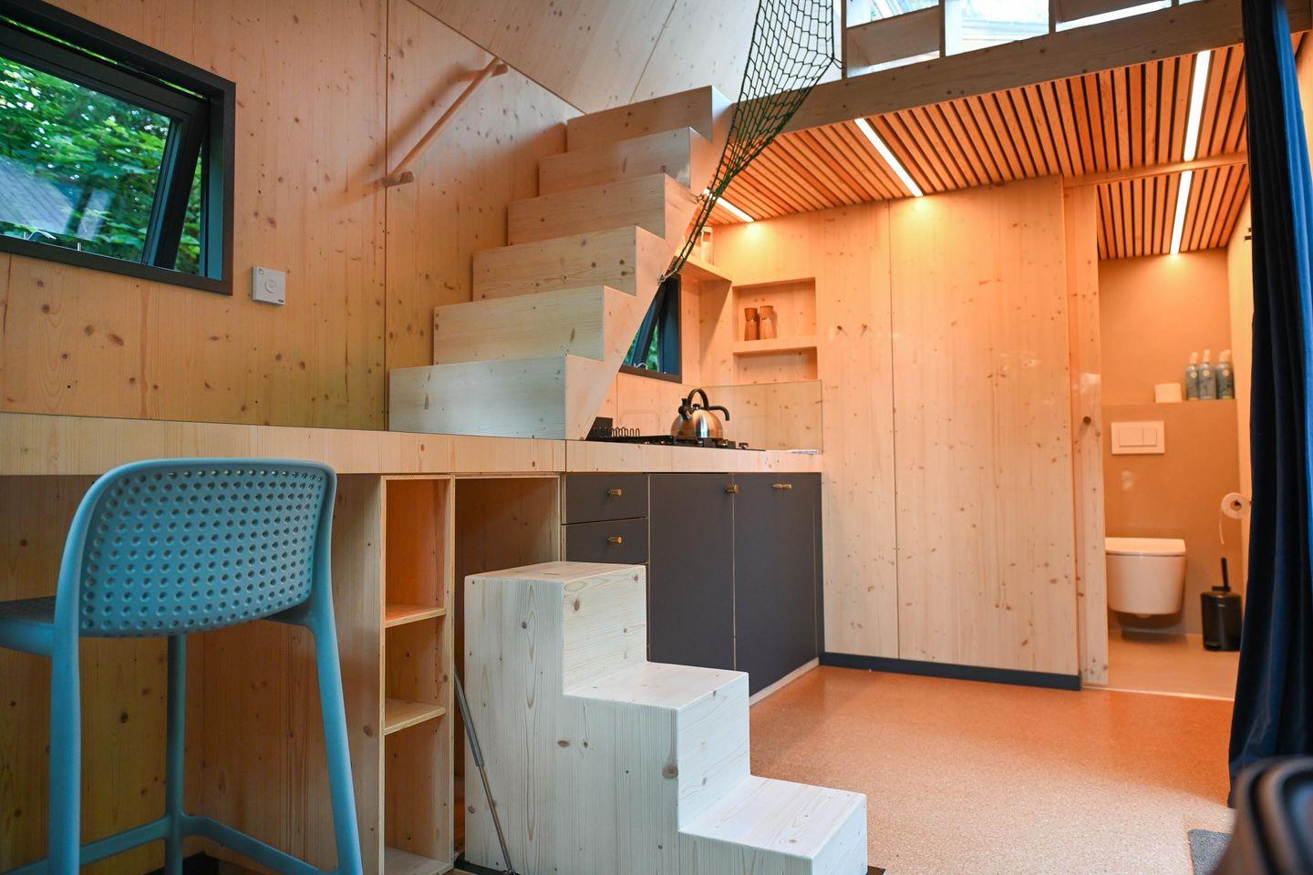 Hinweis: Bitte beachte, dass der Kaminofen vorübergehend nicht zur Verfügung steht. Wir bitten diese Einschränkung vielmals zu entschuldigen. Übernachte in unserem Flagship-Modell für Designliebhaber - dem Green Tiny House Pioneer. Erlebe Nachhaltigkeit von morgen und ein Naturerlebnis der besonderen Art. Unser Vorzeigemodell wird in liebevoller Manufakturarbeit in Schleswig-Holstein hergestellt und bietet auf 22 Quadratmetern Platz für bis zu drei Erwachsene oder zwei Erwachsene und zwei Kinder. Wie jedes unserer kleinen Häuschen ist es als nachhaltige Ferienimmobilie zertifiziert und besteht komplett aus wohngesunden Materialien. Zu den Ausstattungshighlights gehören ein übergroßes Panoramafenster auf der Wohnebene und ein großes Dachfenster auf der Schlafebene, von dem aus man die Sterne beobachten kann. Außerdem eine voll ausgestattete Küche und ein modernes Badezimmer. Außerdem bieten wir dir eine klimaneutrale Übernachtung dank Kompensation aller anfallenden CO2-Emissionen.