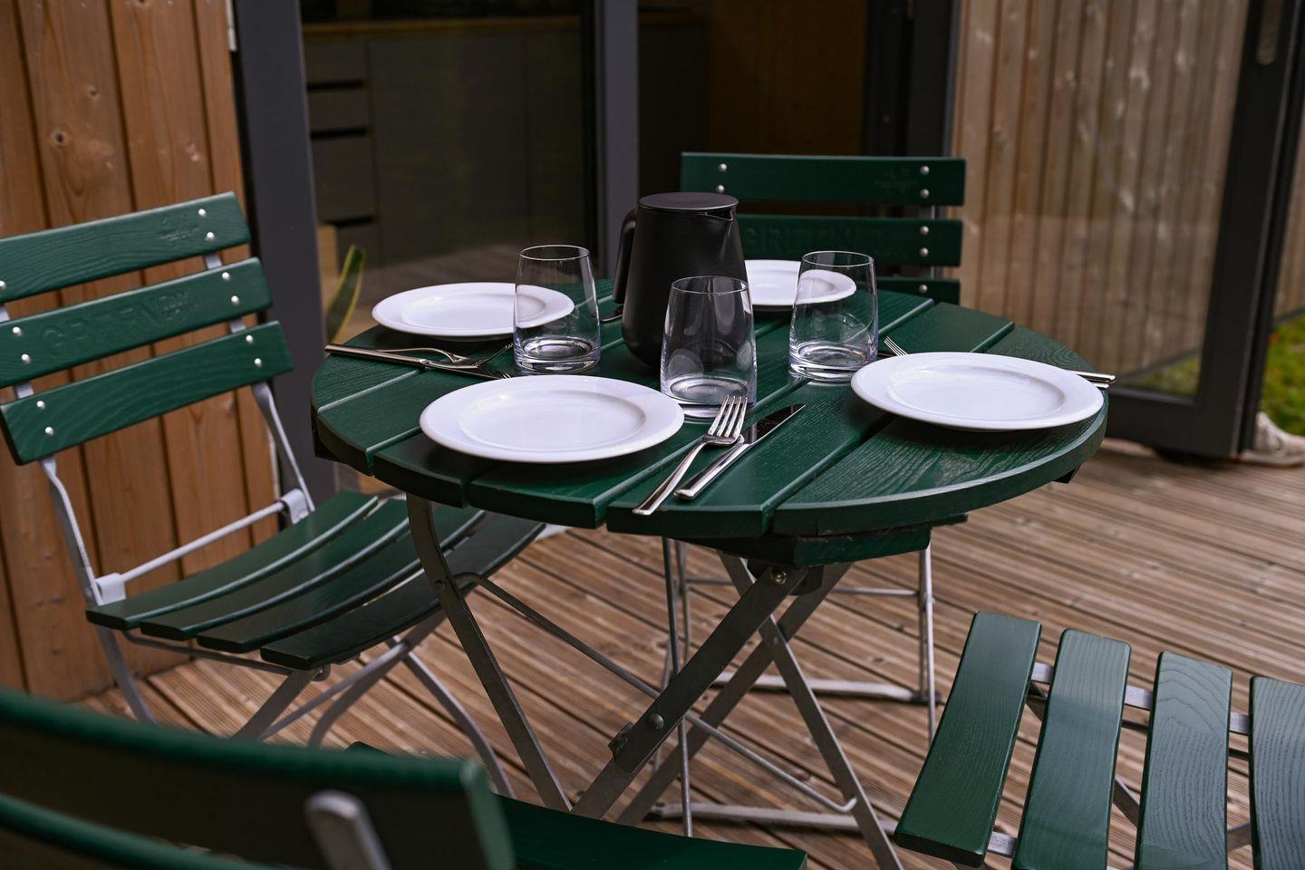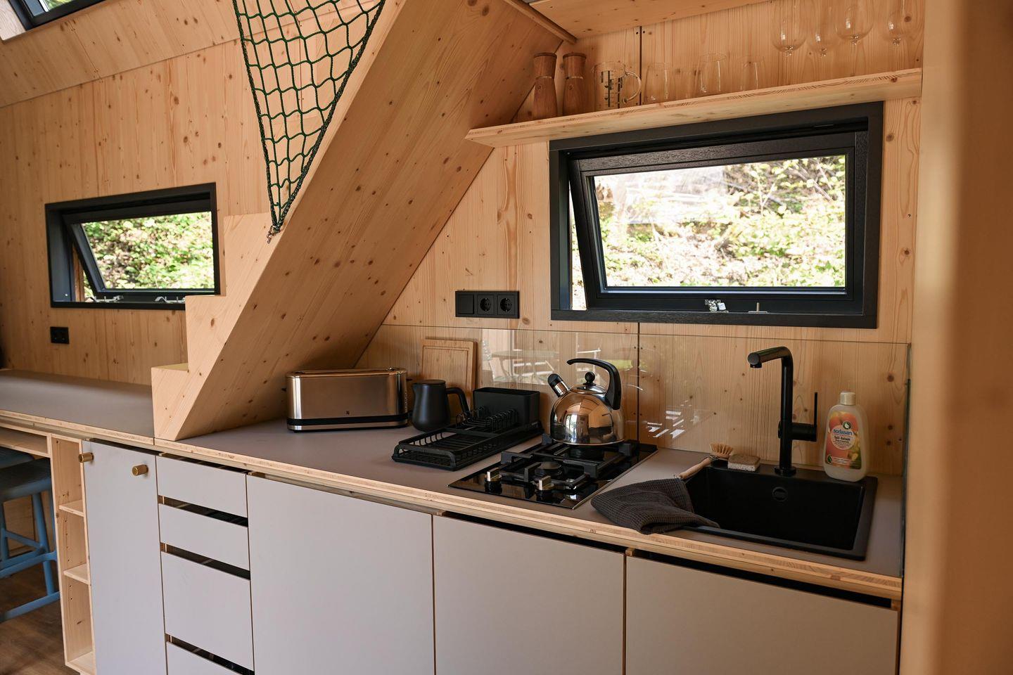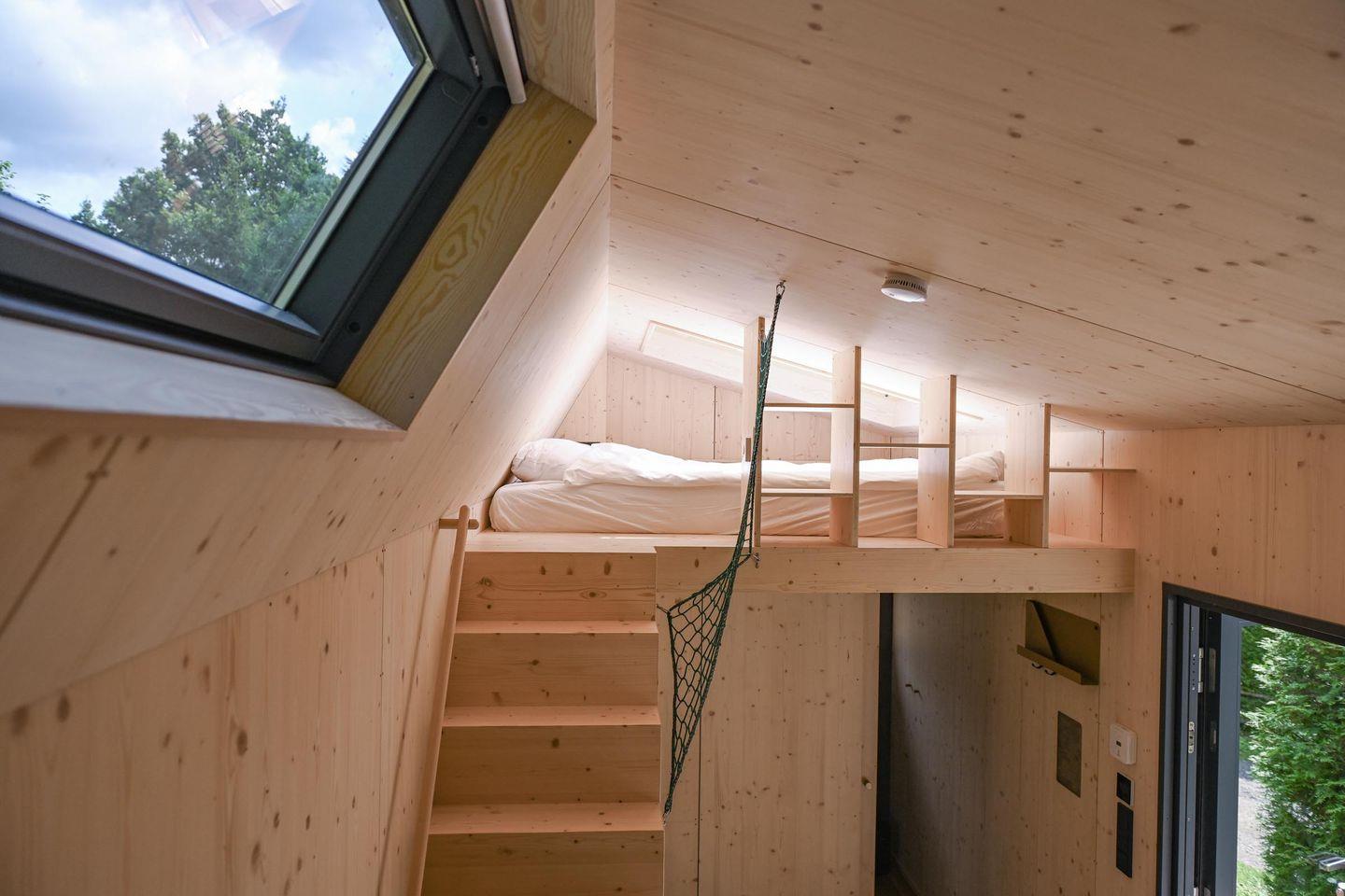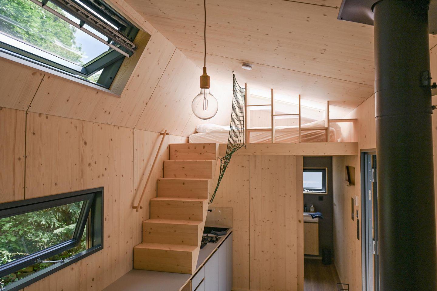 Hinweis: Bitte beachte, dass der Kaminofen vorübergehend nicht zur Verfügung steht. Wir bitten diese Einschränkung vielmals zu entschuldigen. Übernachte in unserem Flagship-Modell für Designliebhaber - dem Green Tiny House Pioneer. Erlebe Nachhaltigkeit von morgen und ein Naturerlebnis der besonderen Art. Unser Vorzeigemodell wird in liebevoller Manufakturarbeit in Schleswig-Holstein hergestellt und bietet auf 22 Quadratmetern Platz für bis zu drei Erwachsene oder zwei Erwachsene und zwei Kinder. Wie jedes unserer kleinen Häuschen ist es als nachhaltige Ferienimmobilie zertifiziert und besteht komplett aus wohngesunden Materialien. Zu den Ausstattungshighlights gehören ein übergroßes Panoramafenster auf der Wohnebene und ein großes Dachfenster auf der Schlafebene, von dem aus man die Sterne beobachten kann. Außerdem eine voll ausgestattete Küche und ein modernes Badezimmer. Außerdem bieten wir dir eine klimaneutrale Übernachtung dank Kompensation aller anfallenden CO2-Emissionen.