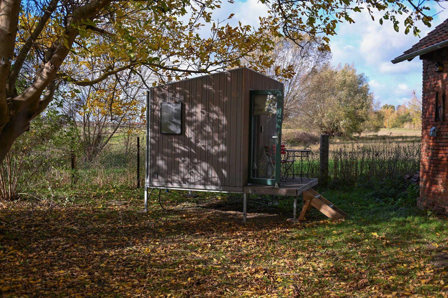 Das Sleep Space 2 am Green&Tiny Spot Osterwieck Birkenmühle verbindet kompaktes, nachhaltiges Wohnen mit historischem Charme. Auf wenigen Quadratmetern bietet es Platz für bis zu 2 Personen: mit gemütlichem ausziehbarem Bett, Lounge-Area, Panoramafenster und kleiner Terrasse. Zusätzlich steht ein modernes Gemeinschaftsbad im angrenzenden Landhaus zur Verfügung, ebenso ein Wohn-Ess-Bereich mit Küchenzeile, Kaminofen und WLAN. Natur- und Kulturlandschaft Harzvorland inklusive.