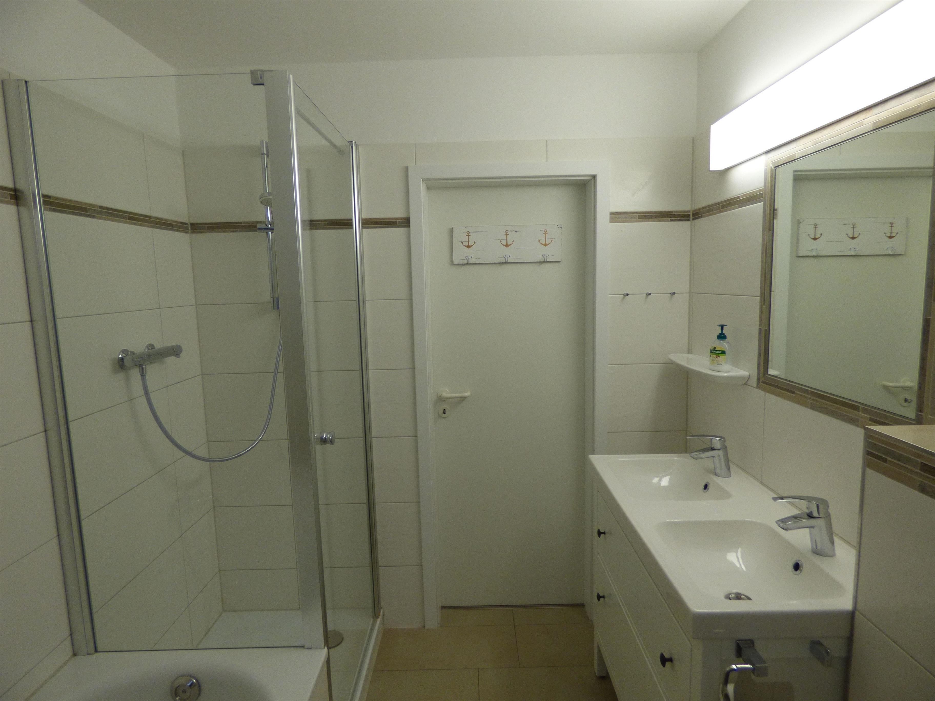 Das Bad ist mit Dusche, Badewanne und WC ausgestattet. Die Wohnung hat eine Grundfläche vom 90qm.