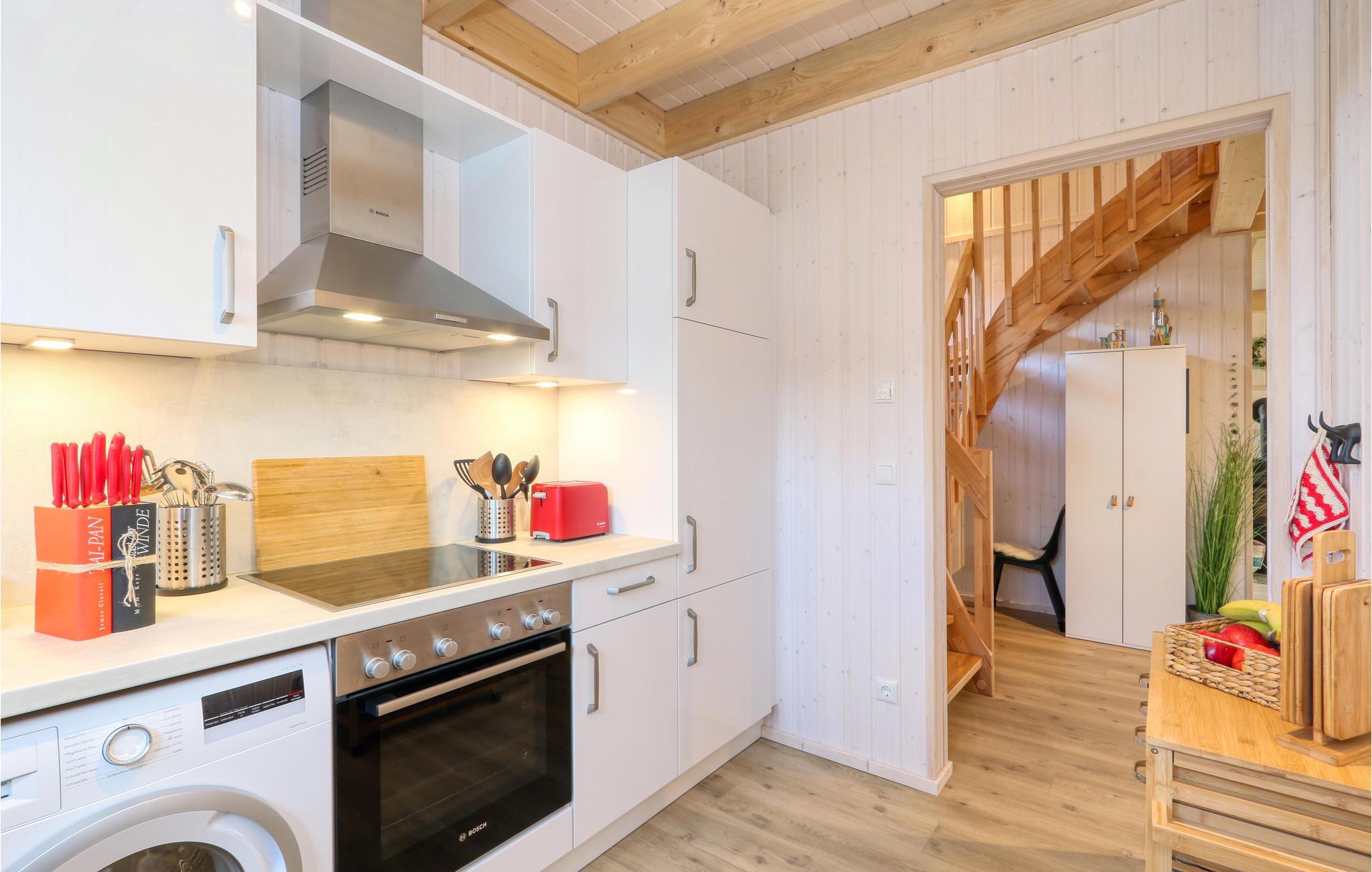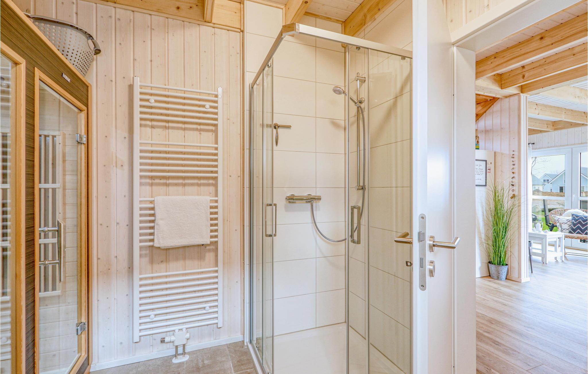 Die Zimmer erstrecken sich über zwei Etagen. Im Bad im Erdgeschoss befindet sich die private Sauna des Ferienhauses, in der Sie nach einem langen Tag an der Ostsee herrlich entspannen können. Anschließend können Sie es sich vor dem Kaminofen im Wohnzimmer gemütlich machen. Zwei Smart-TVs sowie ein DAB Kassettenradio sind ebenfalls vorhanden. Eines der Schlafzimmer verfügt über ein Doppelbett, das zweite Schlafzimmer hat zwei Einzelbetten und einen ausklappbaren Schlafsessel mit Lattenrost und Matratze. Hier befindet sich auch eine kleine Spielecke für Kinder, in der die Kleinen viel Spaß haben werden.
