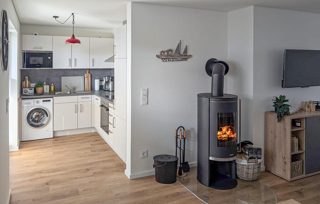 Unweit der idyllischen Ostseeküste erwartet Sie diese kinderfreundliche und geschmackvoll eingerichtete Erdgeschosswohnung, die Ihnen harmonische Tage mit Ihrer Familie oder mit Freunden beschert. Freuen Sie sich auf entspannte Mahlzeiten am einladenden Esstisch, gönnen Sie sich nach einem langen Tag an der frischen Seeluft wohlige Momente in der Sauna, machen Sie es sich abends für einen Film oder ein Brettspiel im Wohnzimmer gemütlich und lassen Sie den Kaminofen für zusätzliche Behaglichkeit sorgen.