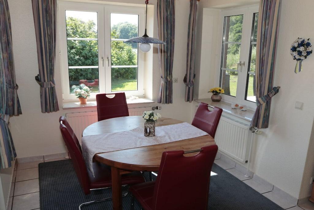 Wohlfühlhaus mit Seeblick und Boot ?? 500 Meter zum Strand und Wattenmeer ?? Inklusive: ?Energie ?Endreinigung ?Bettwäsche ?WLAN ?Telefon ?Boot KEINE verbrauchsabhängigen NEBENKOSTEN vor Ort! ? Betten sind bezogen! ? Schlüsselübergabe am Ferienhaus ? Alle Räume im Erdgeschoß ?? Inklusiv Preis: Sicherheit für Urlaubsplanung! ? Unser Angebot - Ihr Vorteil: Urlaub wird berechenbar! REPP ? BÜCKER F E R I E N H Ä U S E R BestPreis! - Direkt BUCHUNG über WEBSITE: https://www.repp-ferienhaeuser.de KOCHEN - Küchenzeile ? Backofem ? 4 Induktions Kochfelder ? Mikrowelle ? Miele Geschirrspüler ? Kühlschrank mit Gefrierfach ? Filter Kaffeemaschine ?Toaster ? Wasserkocher ? Rührgerät ESSEN ? Im gemütlichen Erker leckeres Essen genießen ? Für kleine Gäste steht ein Hochstuhl bereit WOHNEN - Wohlfühlen wie ZUHAUSE ? SAT-TV mit 32" LED Fernseher ? DVD Player ? Radio mit CD SCHLAFEN - 3 Schlafräume ? 1 SZ: Doppelbett 160x200 ? 2 SZ: Einzelbetten 90x200 ? Insektenschutz / Rollläden BAD - neben den Schlafräumen ? Dusche ? 2 Waschtische ? WC ? Insektenschutz / Rollläden Abstellraum ? Waschmaschine (ohne Münzen) ? Staubsauger Überdachte TERRASSE - Entspannen mit Seeblick! ? Gartenmöbel BOOT - Kostenfrei (keine Schwimmwesten) ? Mit dem hauseigenen Kanu die Seenlandschaft erkunden GARTENHAUS ?Terrassenmöbel ? Fahrräder geschützt abstellen