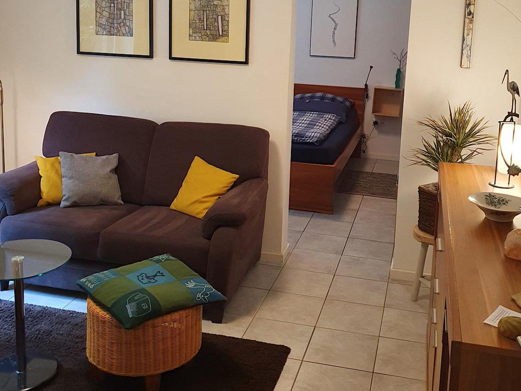 Unsere gemütliche Nichtraucher Ferienwohnung mit 46 m² ist ideal für 2 Personen. Die Wohnung hat einen separaten Eingang und alle Zimmer haben einen wunderbaren Ausblick in einen natürlich angelegten Garten, den Wald und das benachbarte Künstleratelier.