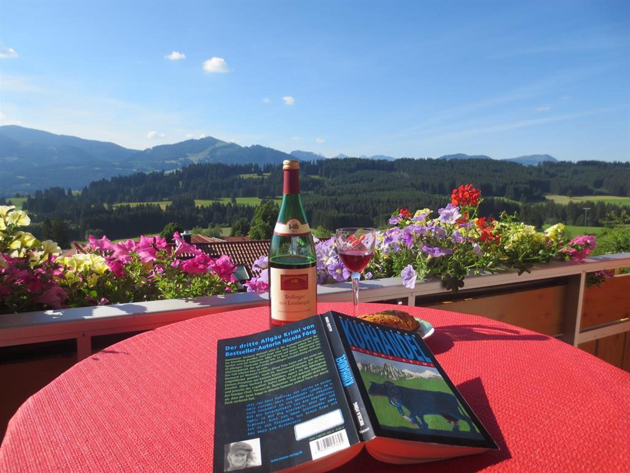 Freie Aussicht auf die Zugspitze und Allgäuer Bergwelt.