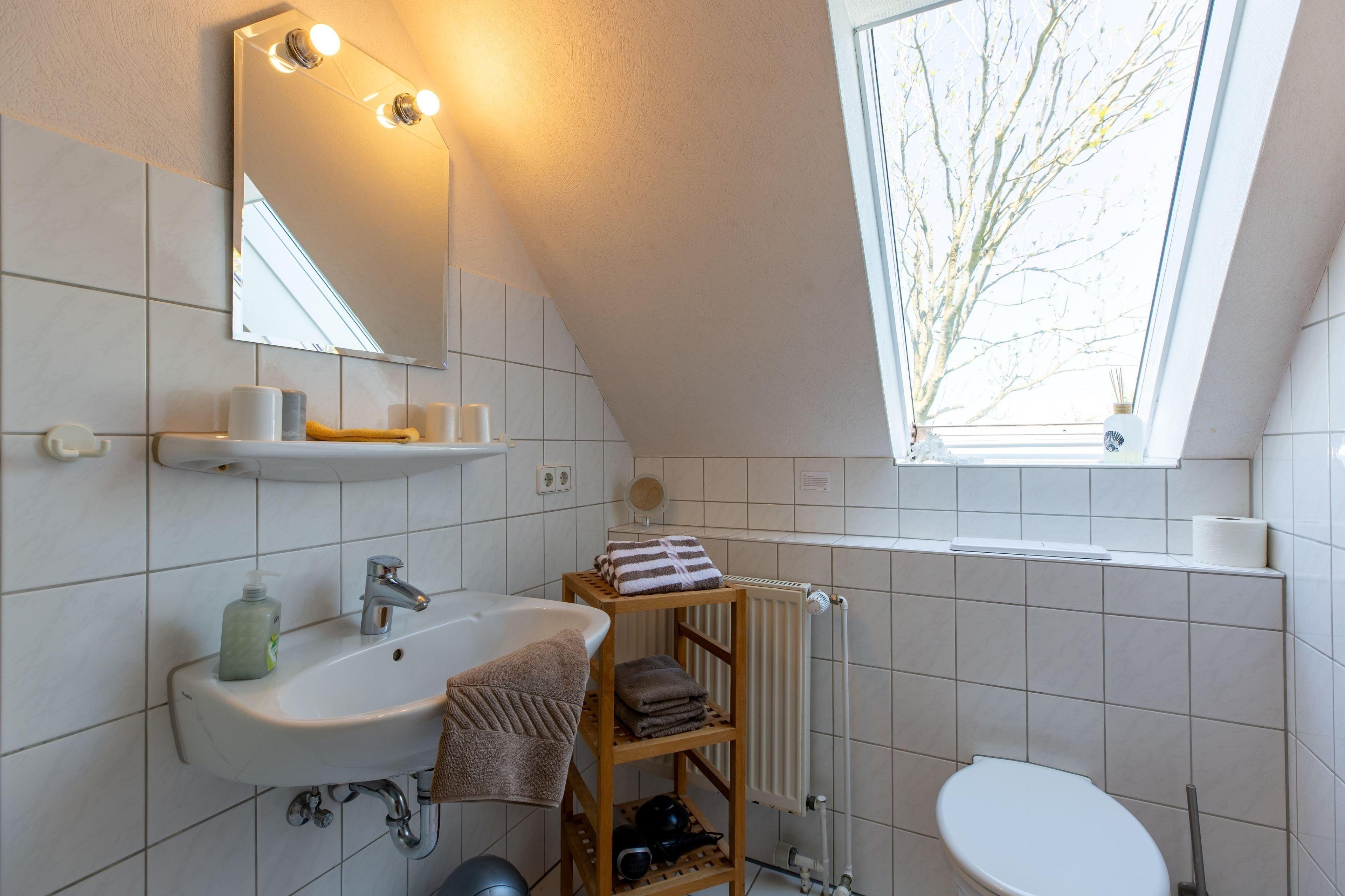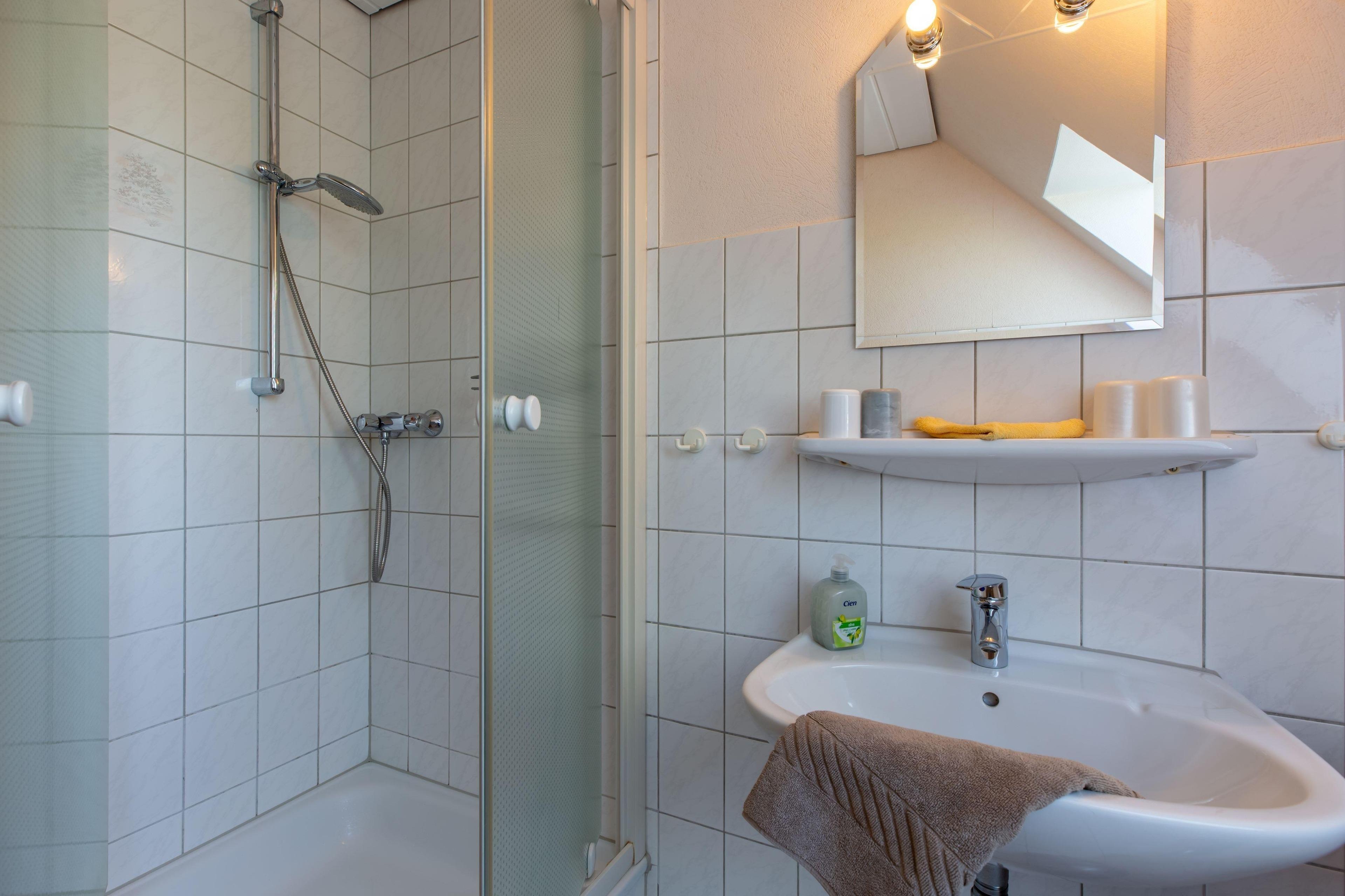 Das modern ausgestattete Duschbad hat eine Fußbodenheizung.