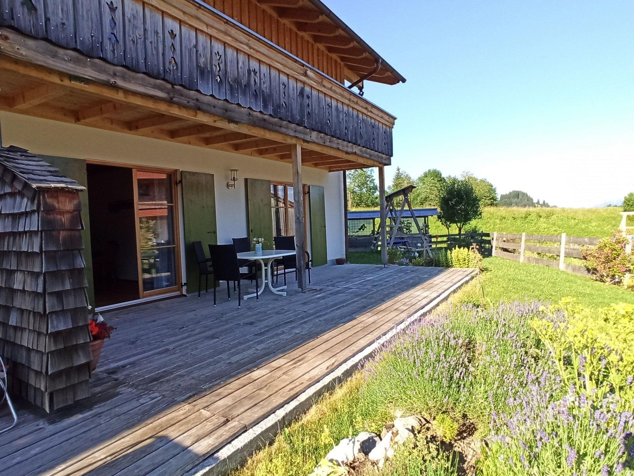 Geräumige Parterre Ferienwohnung in moderner Holzbauweise mit separatem Eingang und großer südseitiger Terrasse mit Bergblick. Die komplett ausgestattete Küche mit Essbereich, Geschirrspüler, gr. Kühlschrank inkl. Gefrierfach, Induktionskochfeld, Backofen, Wasserkocher, Toaster und Kaffeemaschine mit Filter lässt keine Wünsche offen. 2 seperate Schlafzimmer, mit Doppelbetten (180mX200m). Dusche/ WC mit Fenster. Kinderspielplatz im Garten vorhanden. Bitte beachten Sie, dass keine Haustiere erlaubt sind. Es wird nur an Nichtraucher vermietet. Das W-Lan und den Parkplatz vor dem Haus können Sie kostenfrei nutzen. Handtücher, Bettwäsche und Endreinigung ist inklusive.Kurzzeitaufenthaltszuschlag (5/6 Nächte)ist im Preis inbegiffen. Restzahlung und Kurtaxe vor Ort bar bezahlbar.
