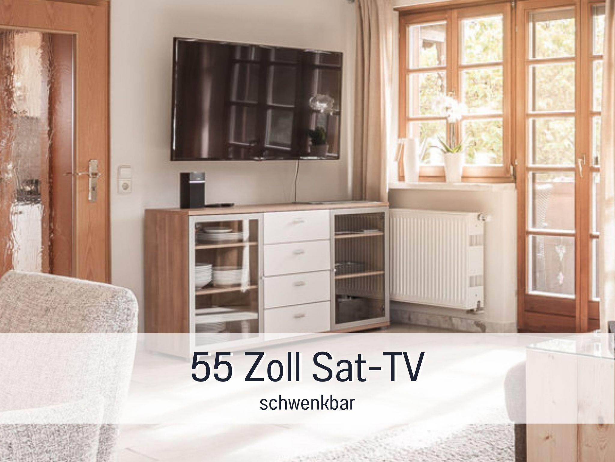 Große 5 Sterne-Ferienwohnung Alpenpanorama mit exklusiver Ausstattung (68 m²) für 2 Personen und herrlichem Blick auf Untersberg, Lattengebirge und Predigtstuhl sowie Schlafzimmer, Küche, Wohnzimmer, Dusche/WC und Balkon.