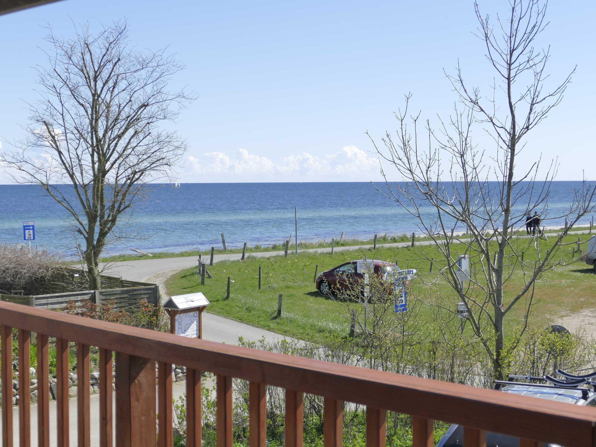 Ostsee. Auf der Südseite vor der Wohnung gibt es eine kleine Sitzmöglichkeit auf der Balustrade mit Blick auf