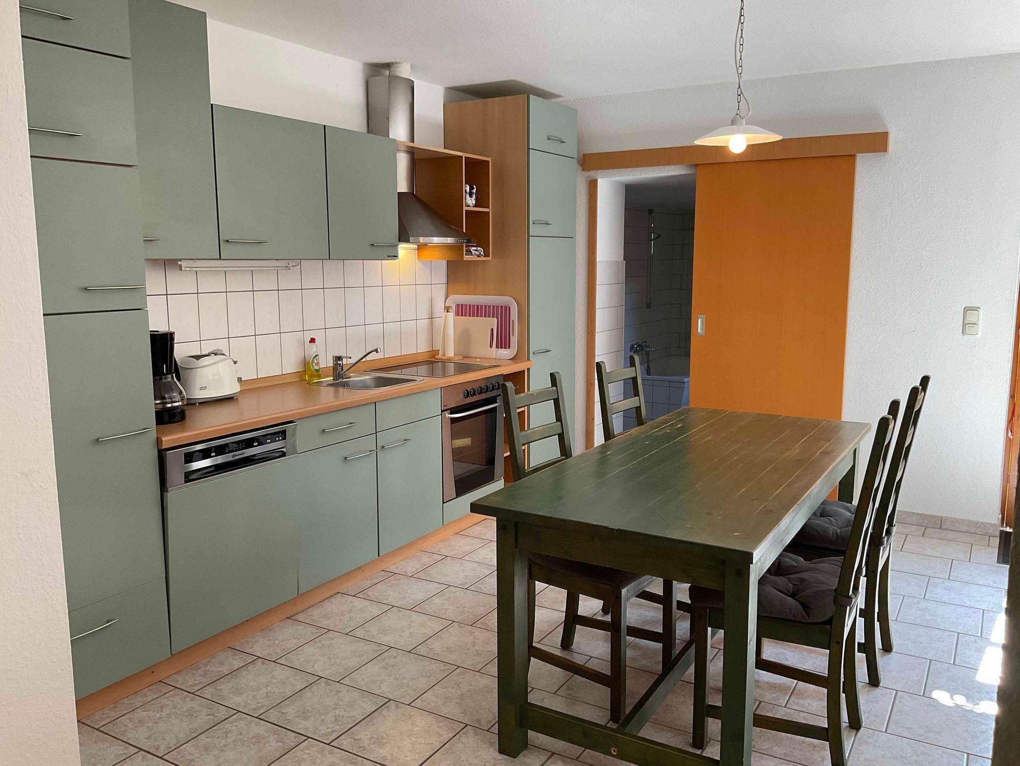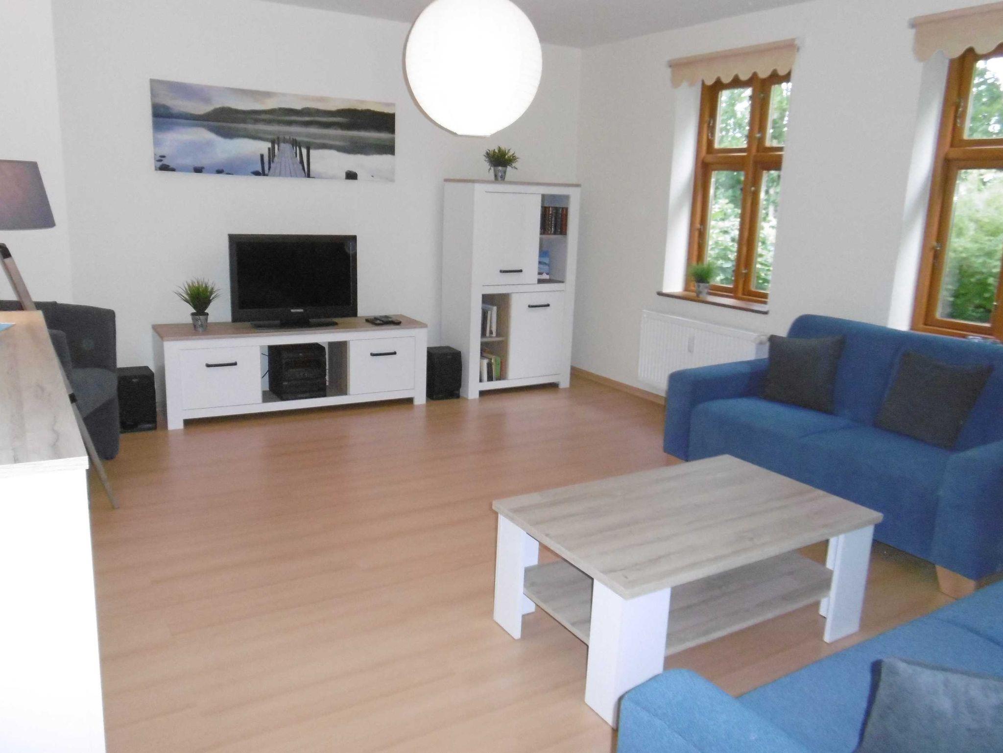 Die 70 m² große Ferienwohnung verfügt über ein gemütlich eingerichtetes Wohnzimmer mit Sitzgruppe (TV, Radio, Schreibtisch). Zwei separate Schlafzimmer stehen für Sie bereit, eines mit Doppelbetten eines mit zwei Einzelbetten. Im geräumigen Bad finden Sie neben dem Waschtisch auch eine Badewanne. Die Küche ist modern, mit Ceranherd, Spülmaschine und Esstisch ausgestattet. Auf dem Grundstück stehen Gartenmöbel für Sie bereit und es besteht die Möglichkeit zum Grillen.