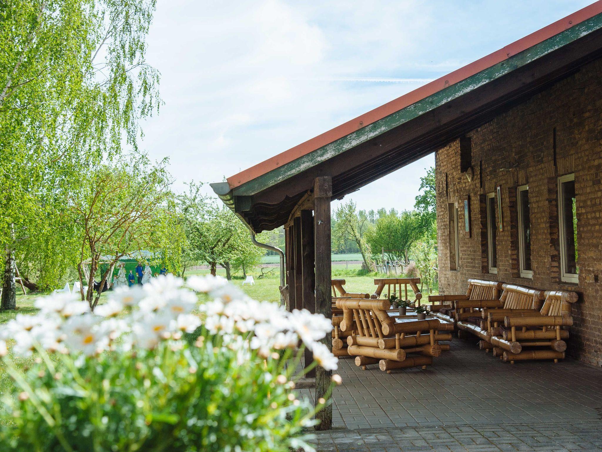 In allen Ferienapartments mit Küche genießen Sie den Blick in den Garten und auf das angrenzende Feld.