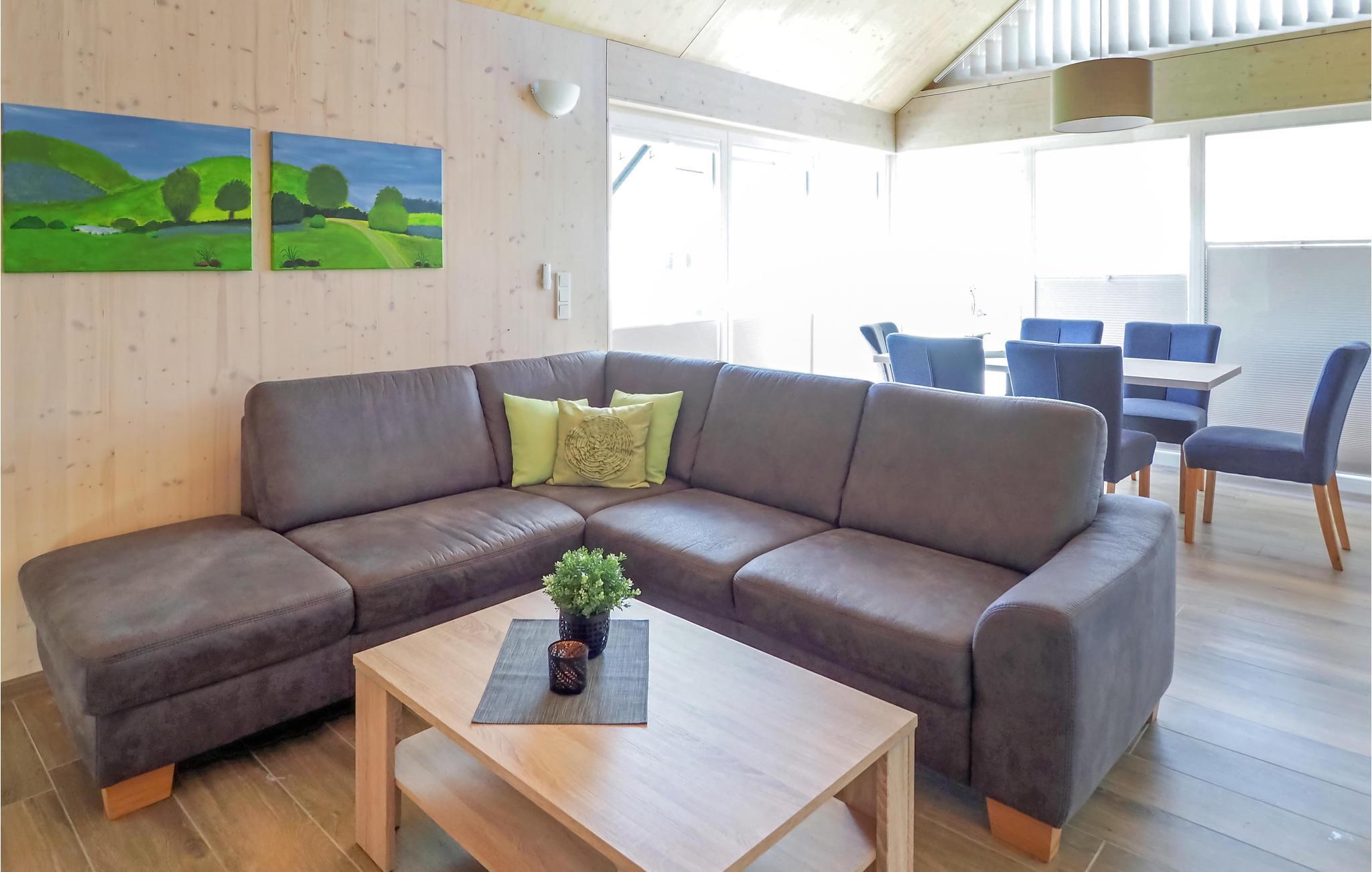 Bis zu 6 Personen finden in dem Haus mit 2 Schlafzimmern Platz, 2 weitere Schlafplätze befinden sich im 1. OG in einer offenen Galerie mit zwei Einzelbetten. Die offene Galerie bietet zusätzlichen Raum für ungestörtes Spielen oder andere Aktivitäten. Durch bodentiefe Fenster haben Sie einen herrlichen Blick ins Freie. Machen Sie es sich nach einem aktiven Tag in der Natur gemütlich oder entspannen Sie in der Sauna.