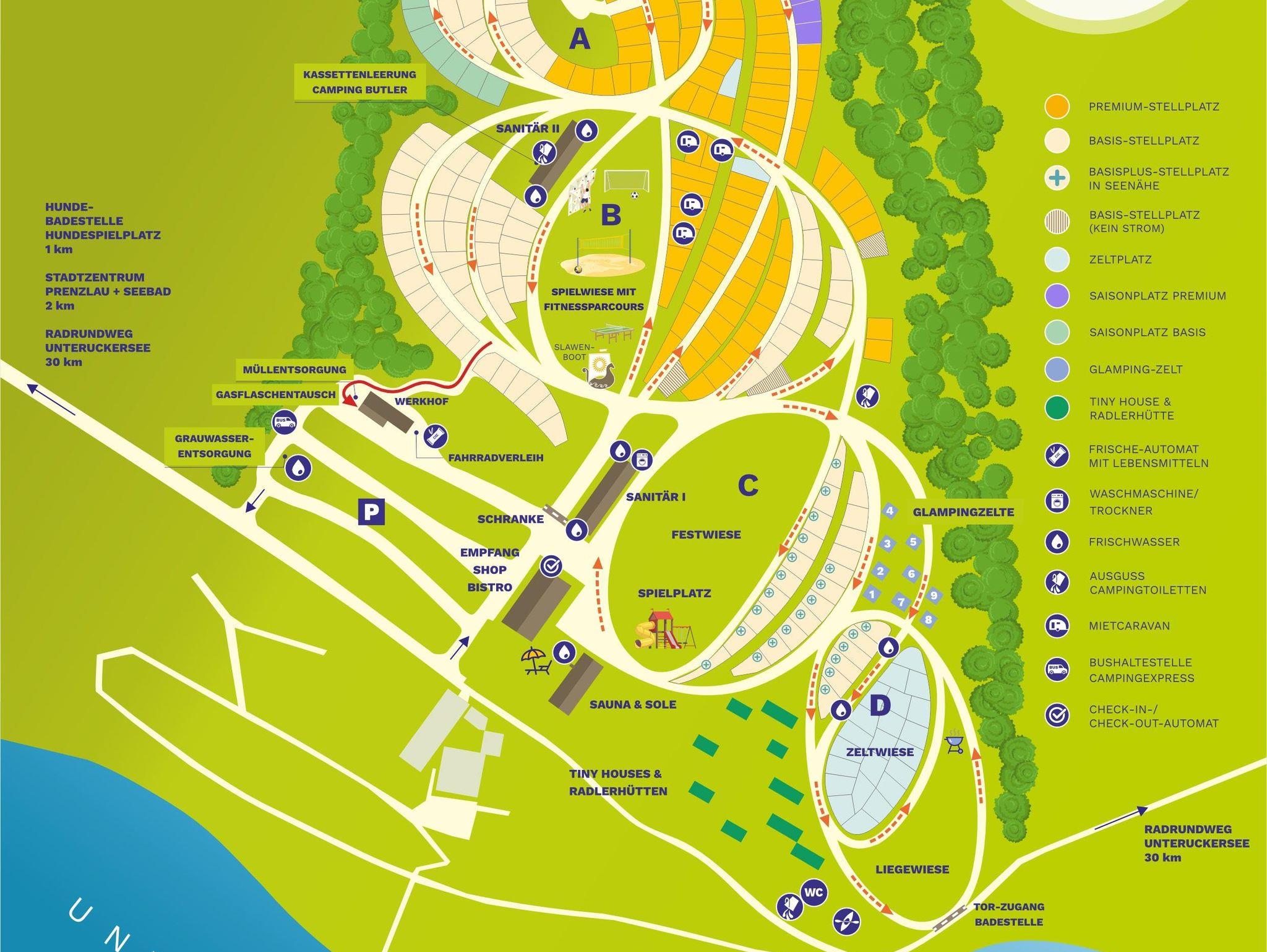 Freuen Sie sich auf moderne Sanitäranlagen, Stromanschlüsse, Ver- und Entsorgungsmöglichkeiten, WLAN sowie zahlreiche Freizeitangebote auf und rund um den Platz. Hunde sind ebenfalls herzlich willkommen, sodass auch Ihr vierbeiniger Begleiter den Urlaub genießen kann.