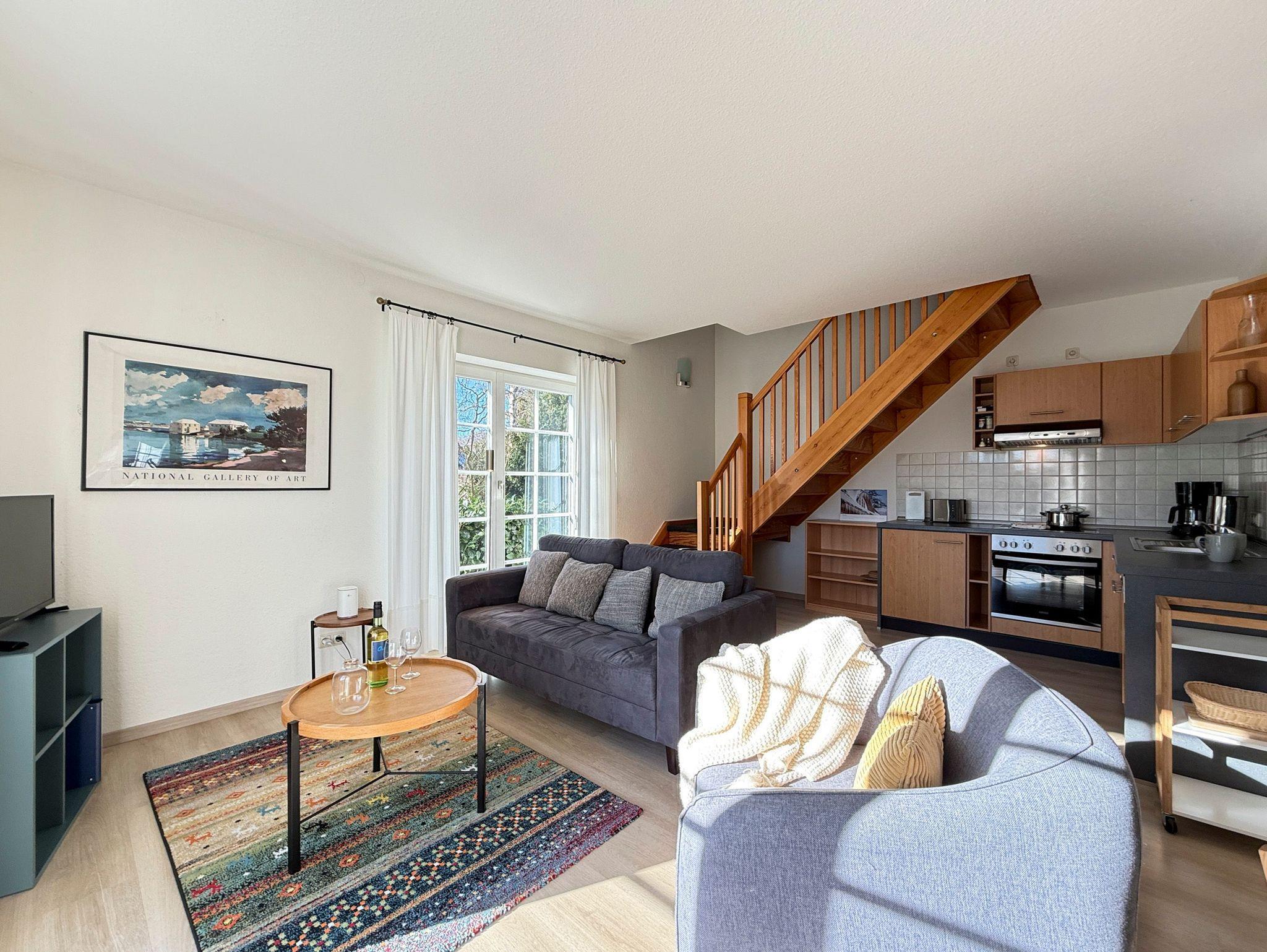 Willkommen in der Ferienwohnung Wiesengrund Haus 5 in Prerow! Diese charmante Maisonette-Wohnung bietet auf 72 m² Platz für bis zu 4 Personen und verbindet modernen Komfort mit einer ruhigen Lage, ideal für Familien und Naturliebhaber.