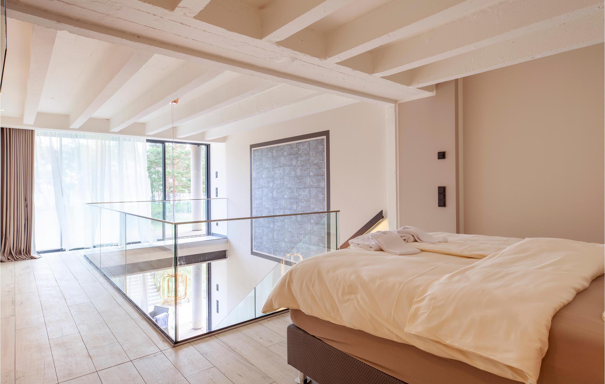 Das hochwertige "Avida Loft" überzeugt durch elegantes und außergewöhnliches Design auf zwei Ebenen. Durch die riesigen, elektrischen Panoramafenster sowie die Bauweise mit viel Glas ist die loftartige Wohnung sehr hell und lichtdurchflutet. Alle Bereiche sind miteinander verbunden, so wird ein offenes Raumgefühl geschaffen. Im Obergeschoss, der über eine Treppe zugänglich ist, befindet sich der offene Schlaf- und Ankleidebereich. Genießen Sie hier den Blick auf die Ostsee direkt vom Bett aus. Das hochwertige Boxspringbett mit sehr bequemen Matratzen lässt Sie herrlich ausgeruht den Tag beginnen. Die kleine Pantry-Küche verfügt über einen Geschirrspüler und für Kaffeeliebhaber eine Tassimo-Kapselmaschine (Kapseln bitte selbst mitbringen).