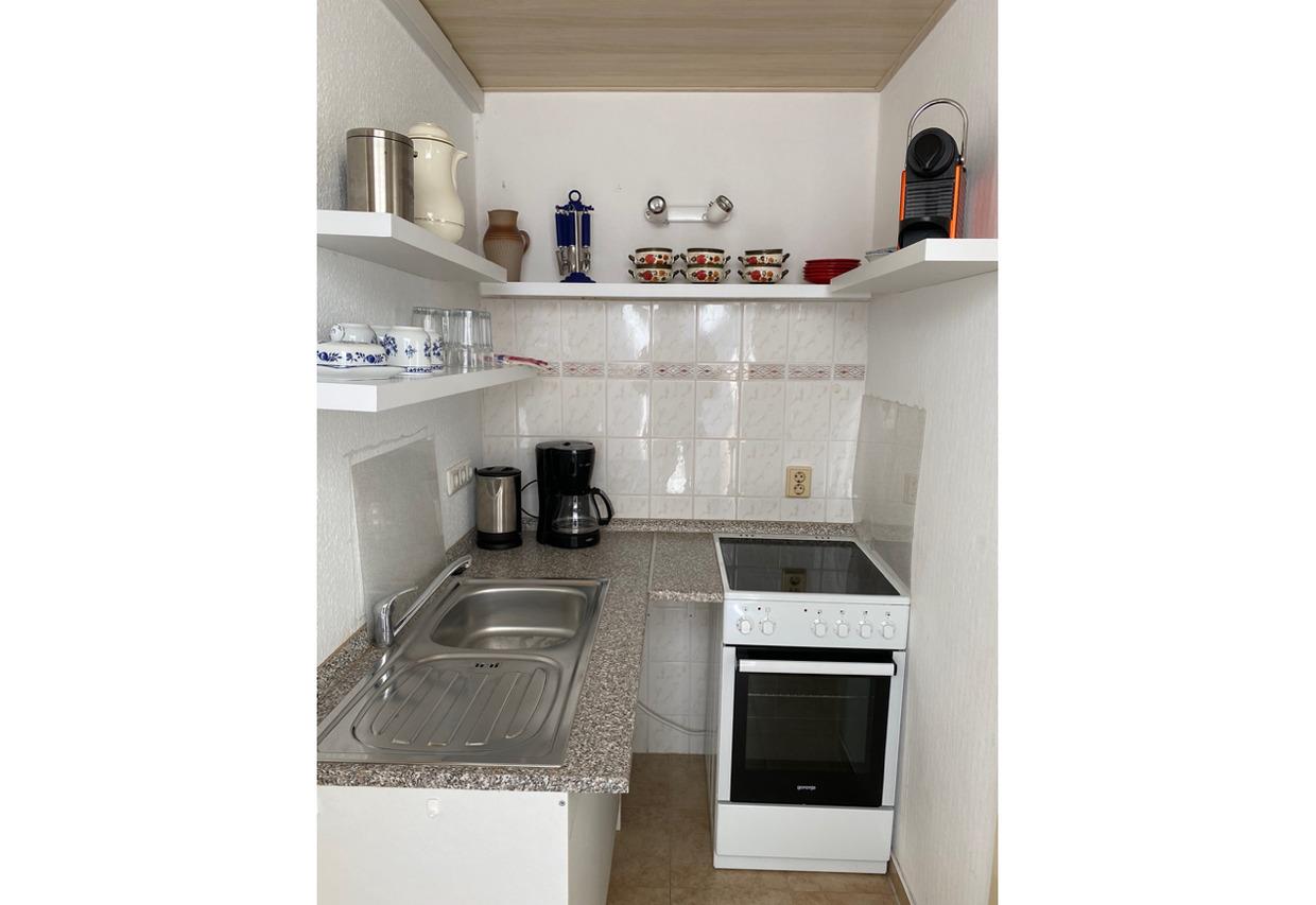 Die separate KÜCHE ist mit Backofen, 4er-Cerankochfeld, Spüle, Kaffeemaschine, Wasserkocher und einigen Kochutensilien ausgestattet. Auf Grund der Größe befinden sich Kühlschrank mit Gefrierfach, Pad-Kaffeemaschine und Toaster im Wohn- und Essbereich.