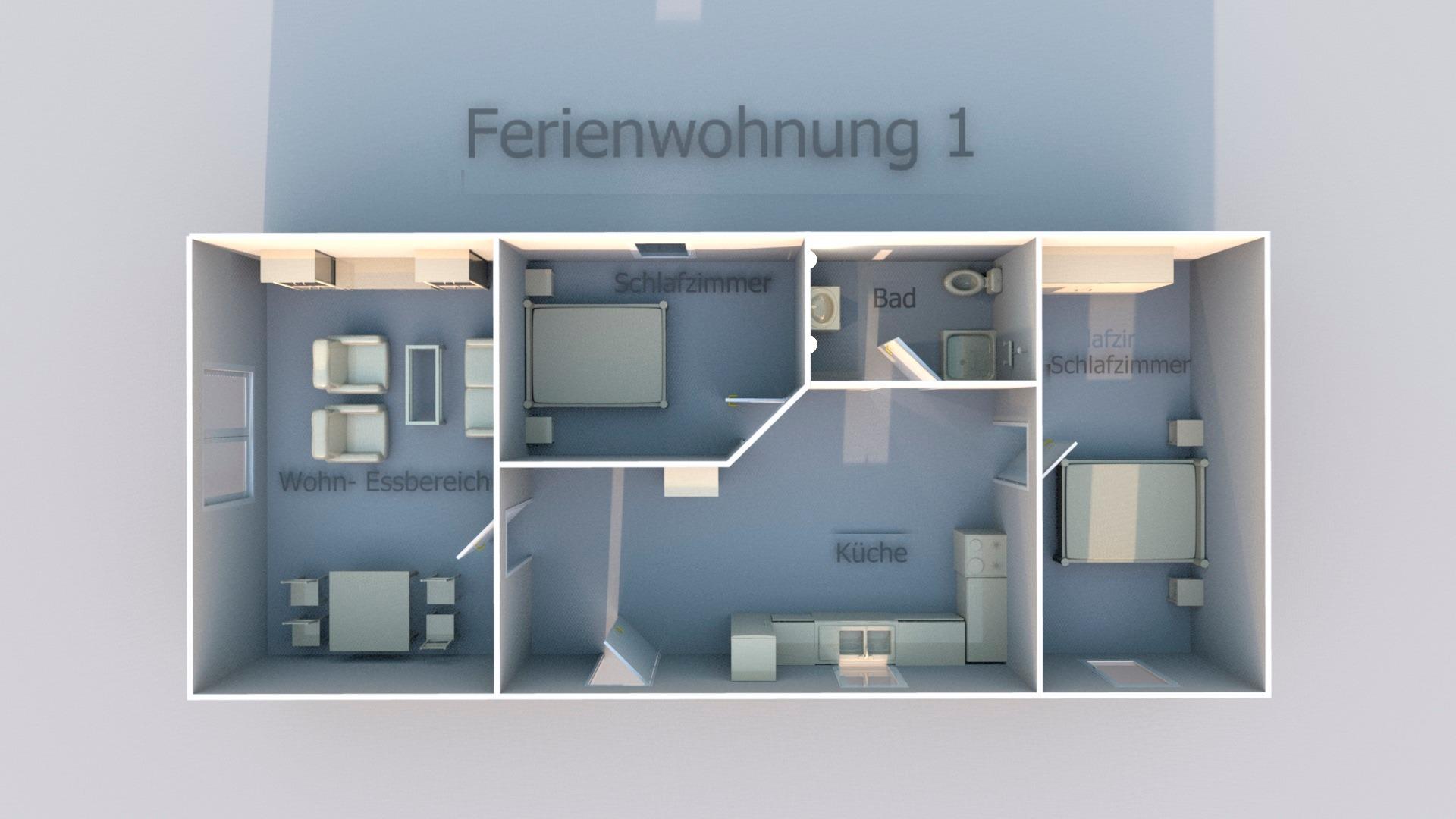 Die Ferienwohnung verfügt über 2 Schlafzimmer, einen gemütlichen Wohn- Essbereich, Küche und Bad, auf fast 50m² und ist ideal für bis zu 4 Personen.