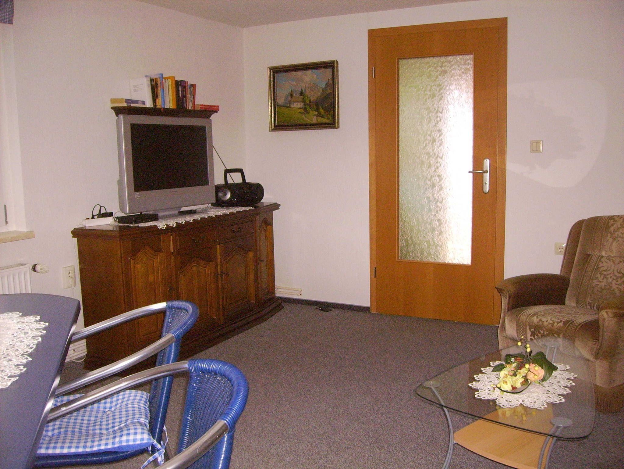 Der Bungalow befindet sich auf unserem Grundstück direkt am Waldrand. Sehr ruhige Lage. Mit einer überdachte Südterrasse. Das Haus ist mit Auslegware und Fliesenboden ausgestattet. Küchenzeile mit Kühlschrank und allen anderen Elektrogeräten, Tisch mit Stühlen. Der Wohnbereich mit Polstersitzgruppe, Flachbildschirm TV und Radio geben auch bei schlechtem Wetter Gemütlichkeit. Der Schlafbereich hat ein Doppelbett und ein Einzelbett in normaler Größe. Bad mit Dusche und WC. Alles auf einer Ebene.