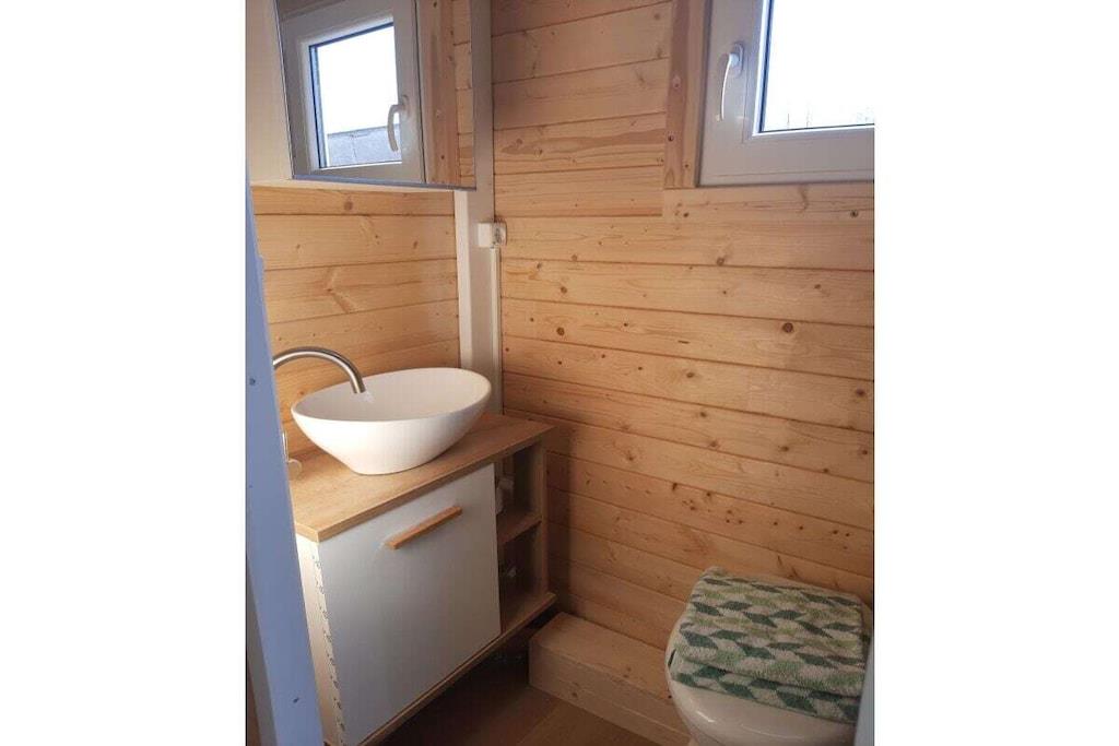 Parterre: (offene Küche(Herd, Kochherd, Kühlschrank), Wohn-/Schlafzimmer(, , Kochnische, Einzelklappbett , Einzelklappbett , Esstisch, Radio, Wasserkocher, Kochherd, Kaffeemaschine, Grill, Kühlschrank), Schlafzimmer(, , Doppelbett, TV, Radio), Badezimmer(, Toilette, Dusche, Waschbecken)) , , Erste-Hilfe-Station, Terrasse(Gartenmöbel), Liegestühle(Liegen), Fahrräder verfügbar
