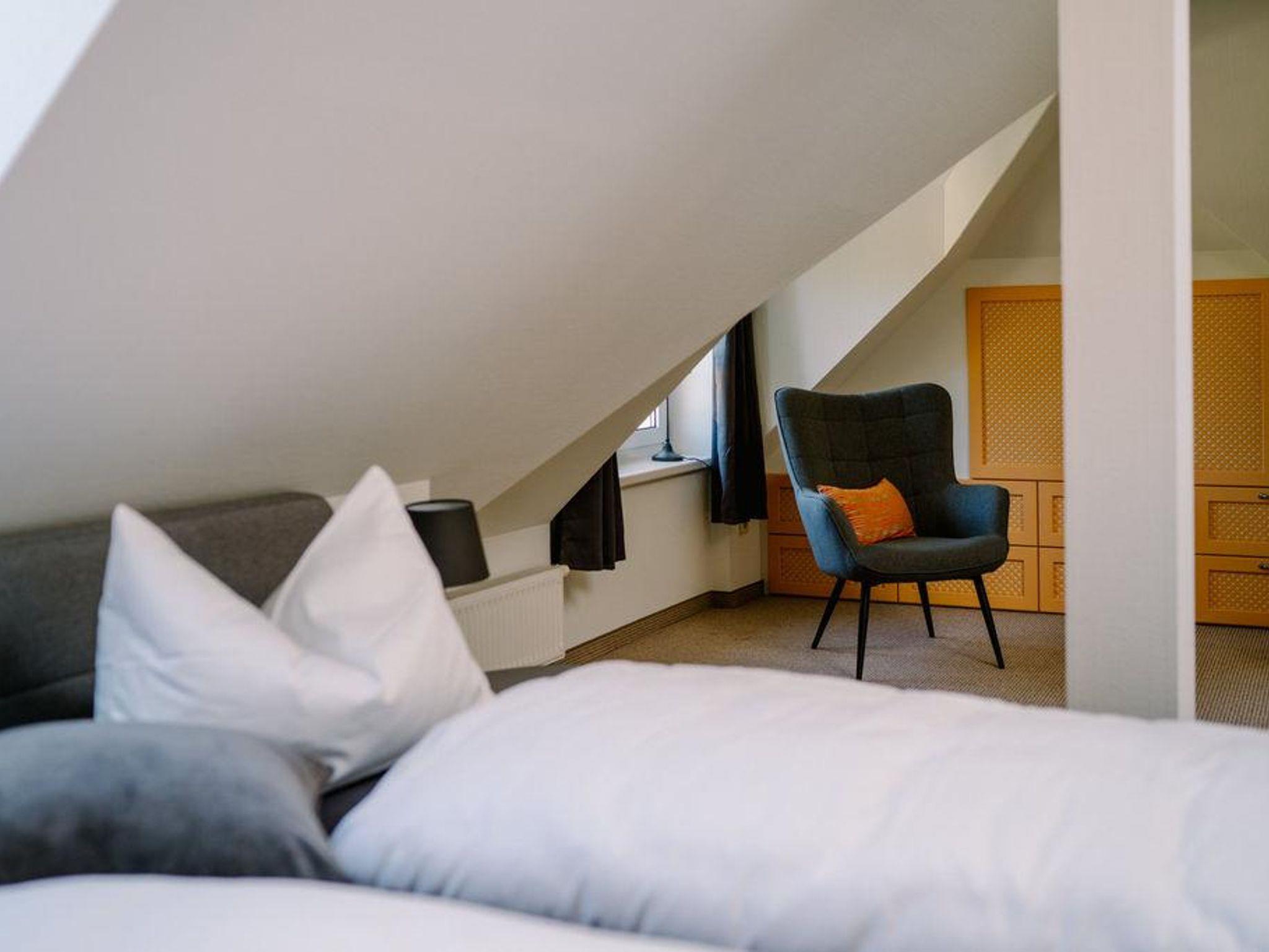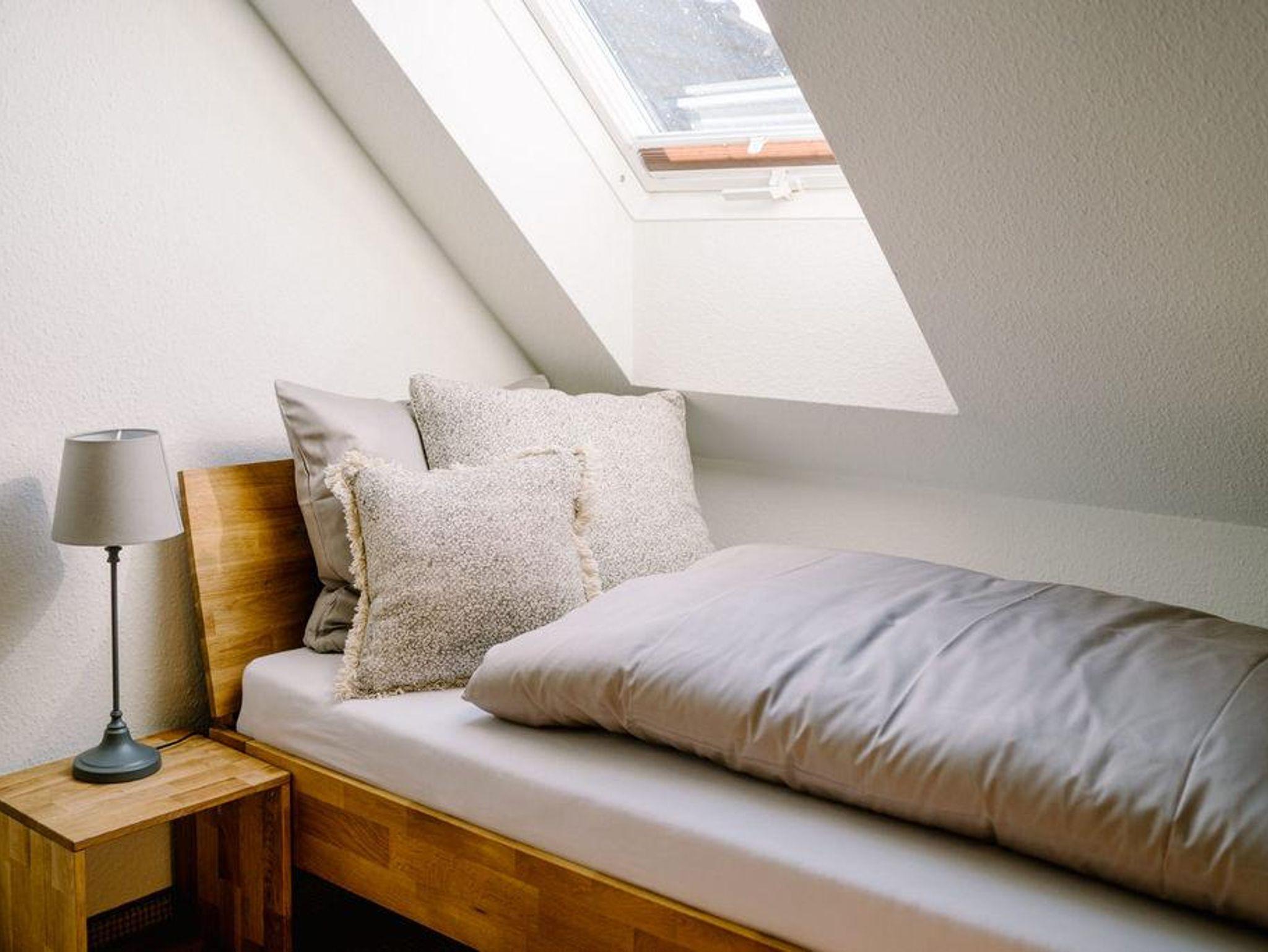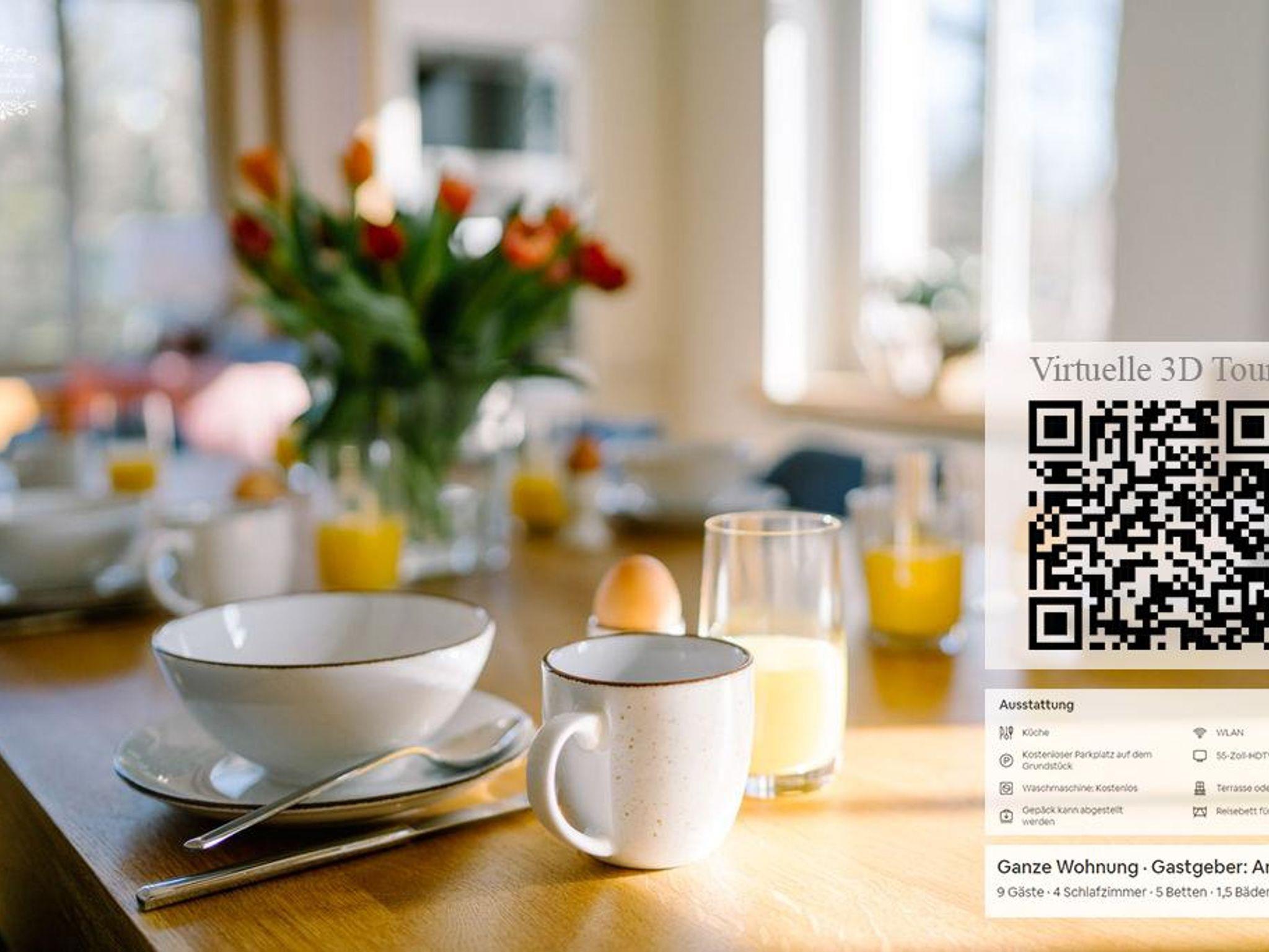 Unsere großzügige Maisonettwohnung mit Dachterrasse mit 155m² Wohnfläche im Dachgeschoss bietet Platz für 1-7 Personen. Das gemütliche Wohnzimmer mit Sofa und Fernseher lädt zum Verweilen ein. Die komplett ausgestattete Küche mit Geschirrspüler, Kühlschrank inkl. Gefrierfach, Herd, Backofen, Wasserkocher, Toaster und Kaffeemaschine lässt keine Wünsche offen. Die Ferienwohnung verfügt über vier Schlafzimmer. Drei Schlafzimmer sind mit jeweils einem Doppelbett ausgestattet. Im vierten Schlafzimmer befindet sich ein Einzelbett. Das geräumige Badezimmer mit Dusche, Föhn und WC rundet das Gesamtbild ab. Ein separates WC ist ebenfalls vorhanden. Vor allem im Sommer können Sie entspannte Abende auf der Terrasse verbringen. Bitte beachten Sie, dass keine Haustiere erlaubt sind. Das WLAN und den Parkplatz vor dem Haus können Sie kostenfrei nutzen.