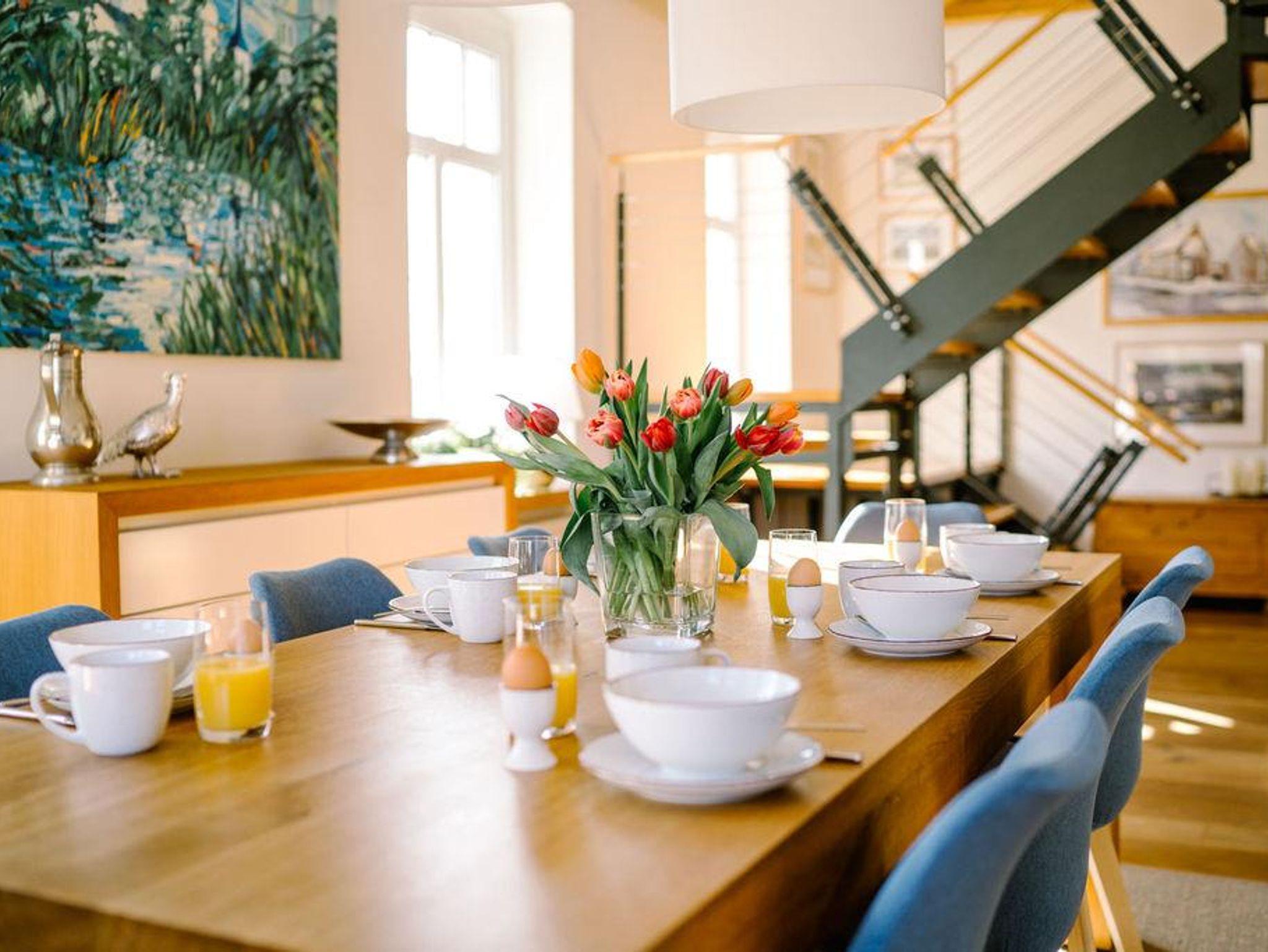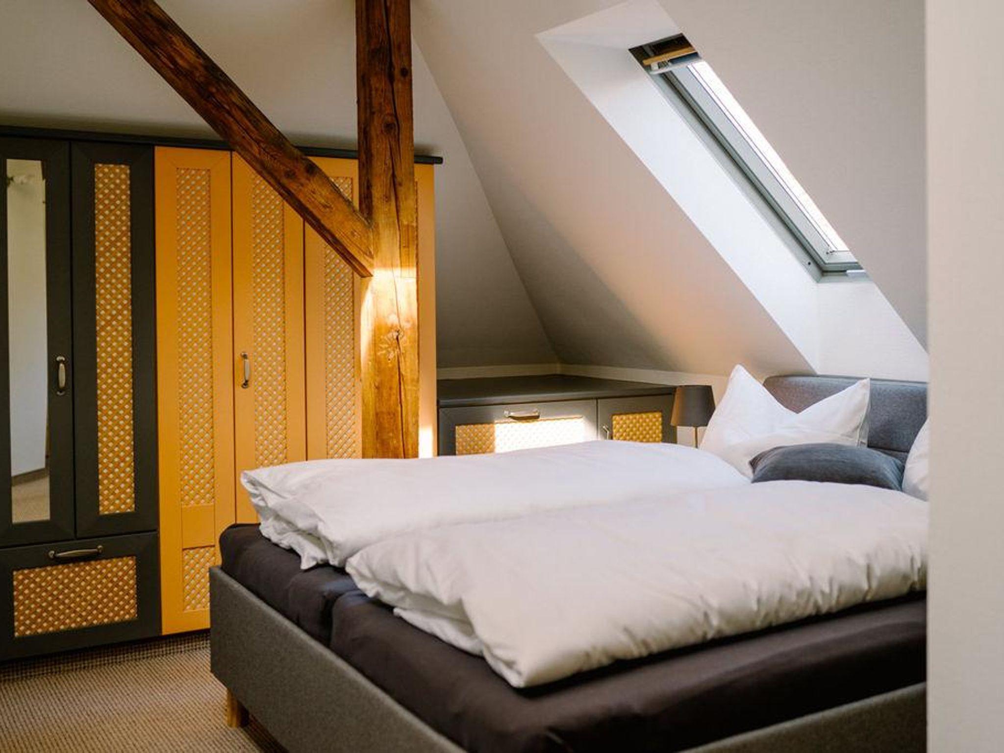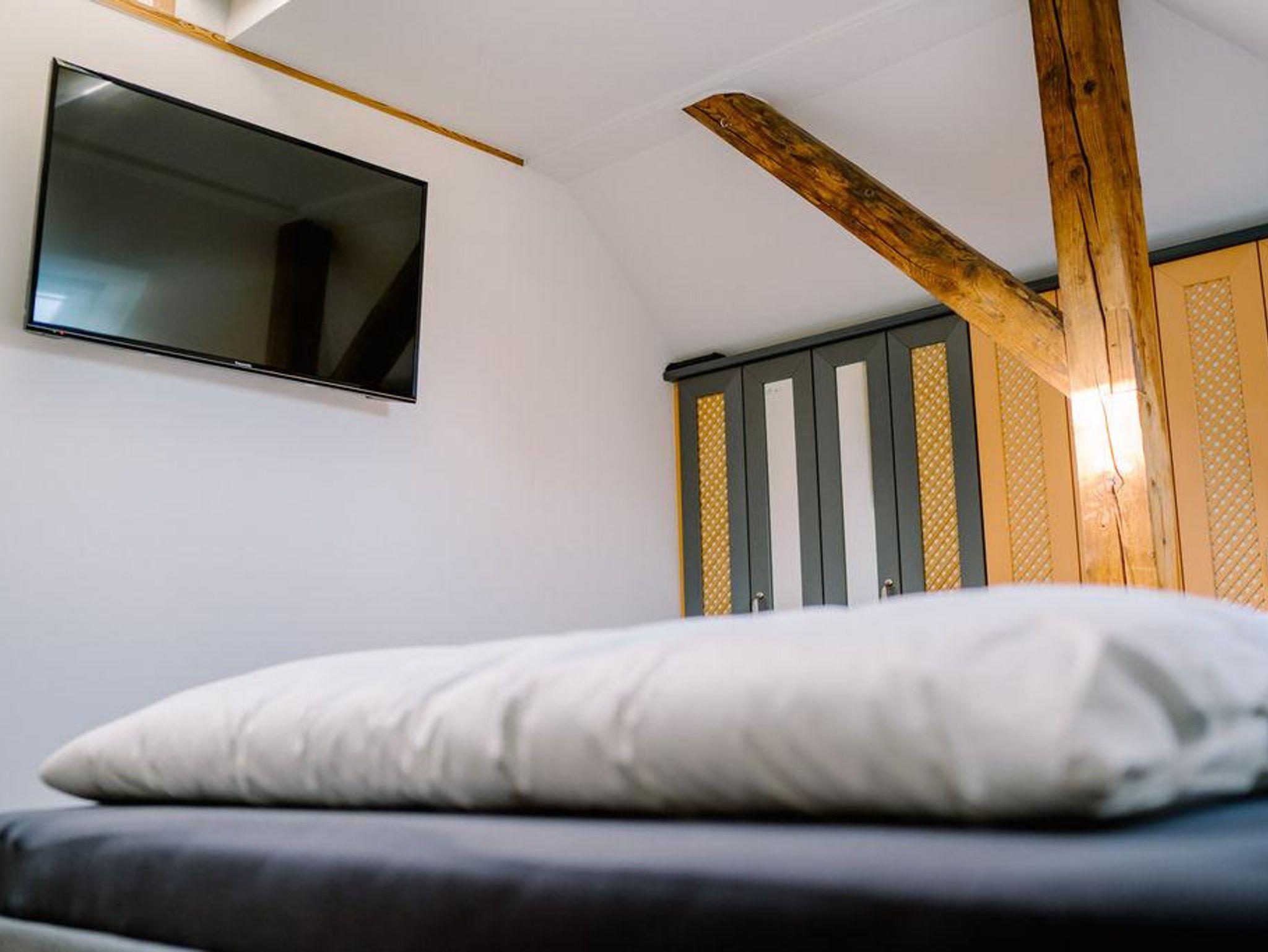 Unsere großzügige Maisonettwohnung mit Dachterrasse mit 155m² Wohnfläche im Dachgeschoss bietet Platz für 1-7 Personen. Das gemütliche Wohnzimmer mit Sofa und Fernseher lädt zum Verweilen ein. Die komplett ausgestattete Küche mit Geschirrspüler, Kühlschrank inkl. Gefrierfach, Herd, Backofen, Wasserkocher, Toaster und Kaffeemaschine lässt keine Wünsche offen. Die Ferienwohnung verfügt über vier Schlafzimmer. Drei Schlafzimmer sind mit jeweils einem Doppelbett ausgestattet. Im vierten Schlafzimmer befindet sich ein Einzelbett. Das geräumige Badezimmer mit Dusche, Föhn und WC rundet das Gesamtbild ab. Ein separates WC ist ebenfalls vorhanden. Vor allem im Sommer können Sie entspannte Abende auf der Terrasse verbringen. Bitte beachten Sie, dass keine Haustiere erlaubt sind. Das WLAN und den Parkplatz vor dem Haus können Sie kostenfrei nutzen.