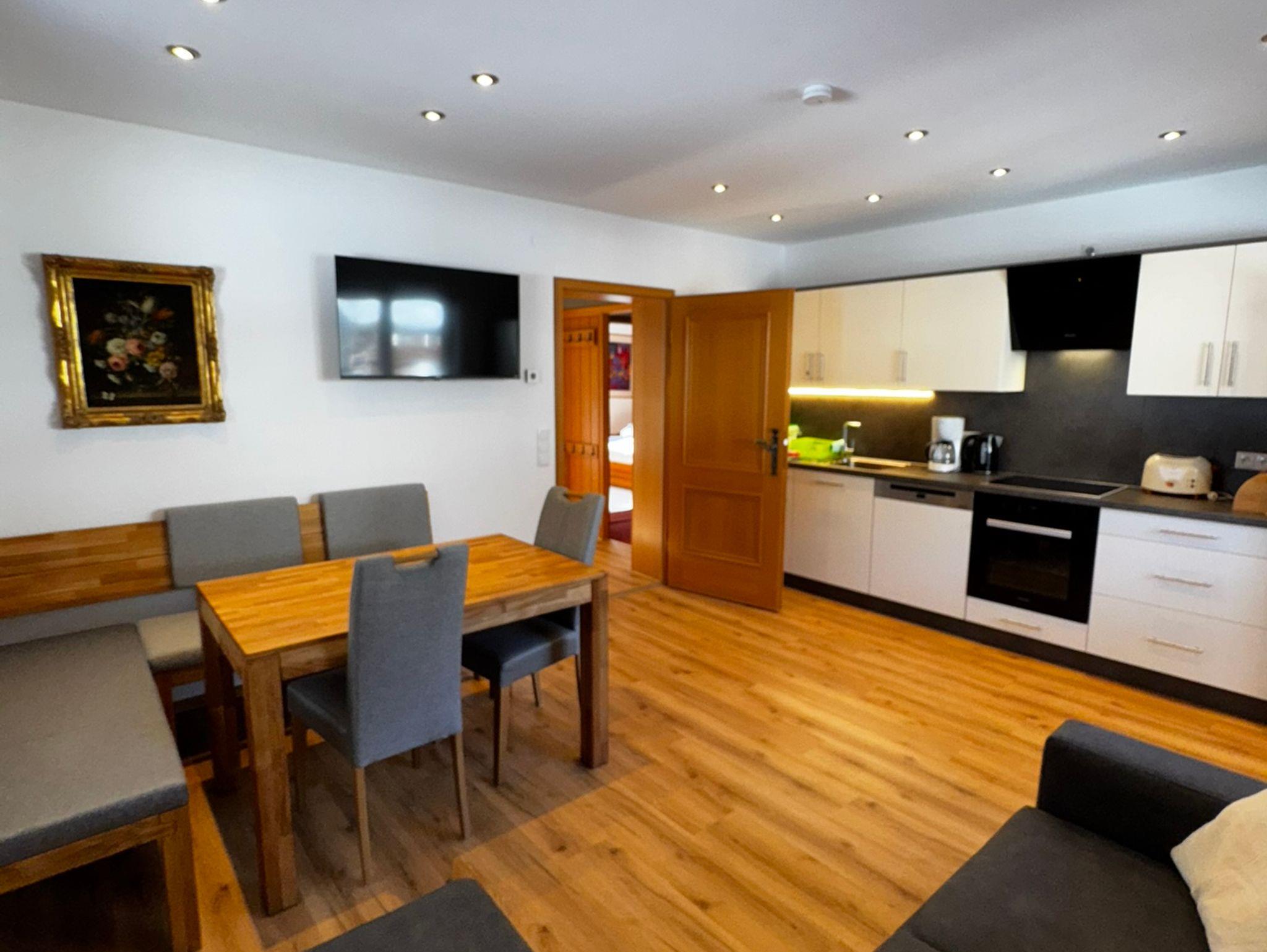 Genießen Sie unsere Ferienwohnung Göll im Haus am Bachrand. Sie wurde 2025 renoviert und ist für 2 Personen möbliert. Wohn- und Schafraum sind getrennt. Das Wohn- und Esszimmer ist mit Einbauküche und Eckbank ausgestattet, sowie Ausziehsofa und Flachbildfernseher. Das Bad ist mit bodenbündiger Dusche ausgestattet. Es ist ein Südbalkon mit Bergblick und Nordbalkon zur Ramsauer-Ache vorhanden.