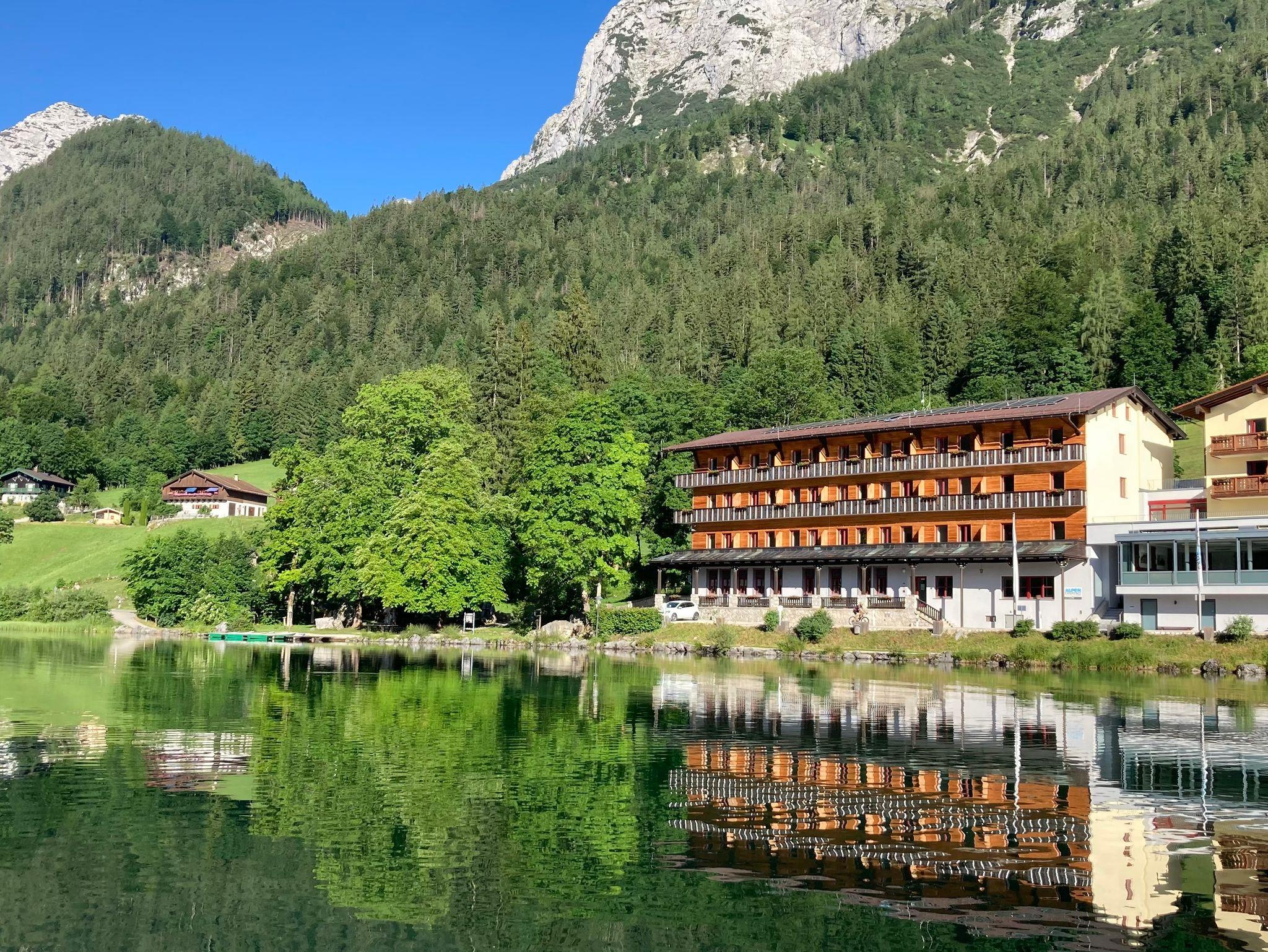 Gruppen, Familien, Einzelreisende? Wir sind offen für ALLE - Eure perfekte budget Unterkunft! Mitten im Hochgebirge, direkt an einem glasklaren Bergsee, umgeben von Deutschlands einzigem Alpen-Nationalpark und unweit der Städte Salzburg, Berchtesgaden und Bad Reichenhall, da liegt unser ALPEN EXPERIENCE CVJM Aktivzentrum. Die einzigartige Natur, das Haus mit seiner Geschichte, gutes Essen und die Begegnung mit den Menschen vor Ort - wir wissen, dass es auf Details ankommt, damit euer Aufenthalt wirklich gut wird. Unseren Gästen stehen kostenlos eine Turnhalle, ein Kinderspielzimmer, Kicker, Billard und Tischtennis zur Verfügung. Zudem verfügen wir über hauseigene Kegelbahnen, Ruderboote und eine Kletterwand, sowie umfangreiche erlebnispädagogische Angebote, die nach Verfügbarkeit hinzugebucht werden können (z.B. Floßbau, Teambuiding, Klettern). Es können nur begrenzt nach Verfügbarkeit Parkplätze zur Verfügung gestellt werden.